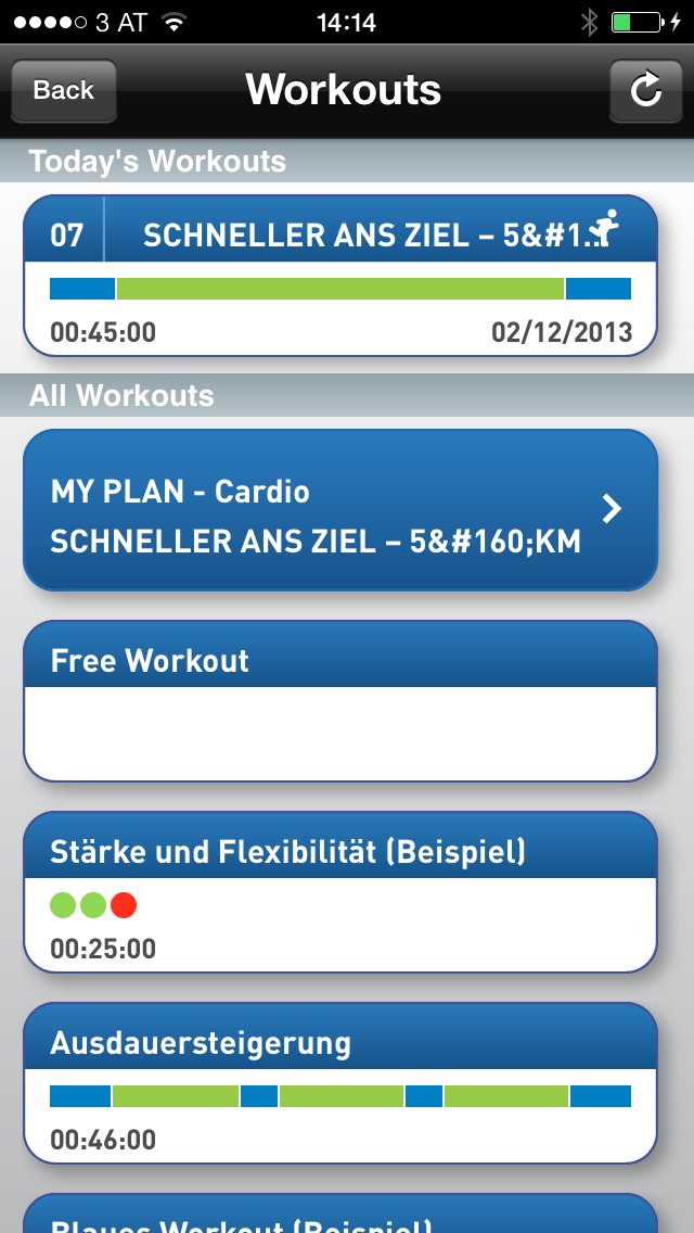 Neben dem freien Training sind weitere Einheiten mit wechselnden Intensitäten vorhanden. Diese können allerdings am Smartphone nicht individuell angepasst werden. Auch Einheiten aus dem Trainingsplan sind nicht auf der App konfigurierbar. Dazu ist ein Login auf der Online-Plattform notwendig. Auf dieser können nicht nur kostenlos Trainingspläne generiert werden, sondern lassen sich auch Workouts und Intervalle angelegen. Workouts sind z.B. „30 Minuten in der gelben Zone“ oder ein „Kalorienverbrauch von 500 kcal“.
