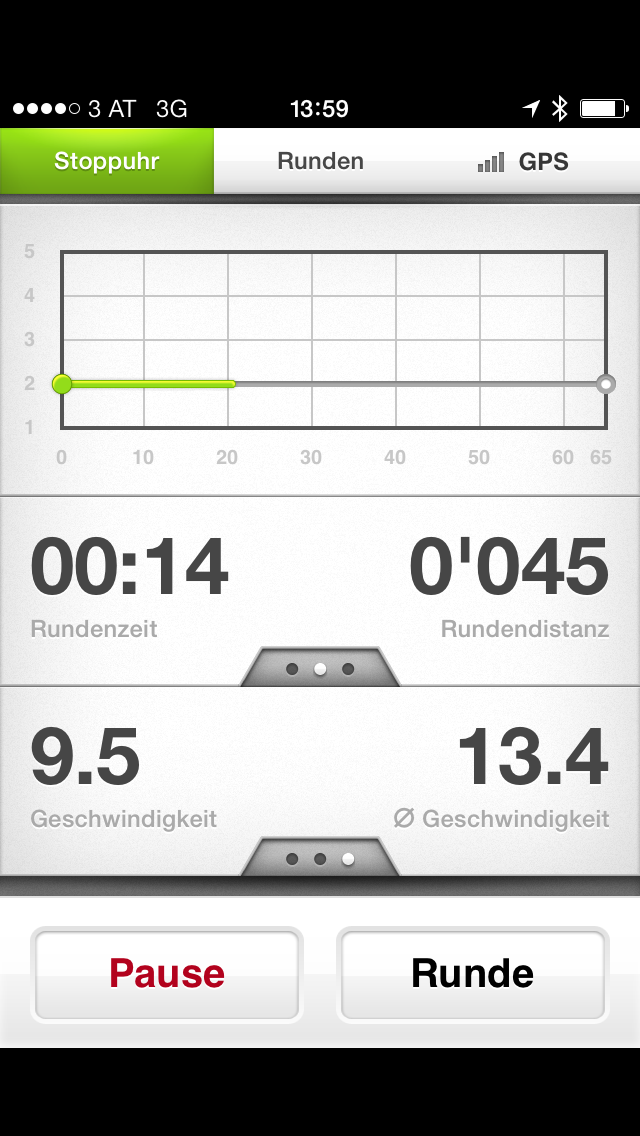 Jedoch sind auch freie Einheiten inkl. Sprachausgabe möglich. Die App ist aufgrund der wenigen Funktion übersichtlich, aber macht auch vom Design einen guten Eindruck. Das Dashboard zeigt während einer Einheit Dauer, Distanz, aktuelles und durchschnittliches Tempo an. Rundendaten bei Intervallen können ebenfalls angezeigt werden. Über den Tab „Runden“ werden zudem alle Splits übersichtlich dargestellt. Auf der App werden auch alle bisherigen und alle geplanten Einheiten angezeigt.
