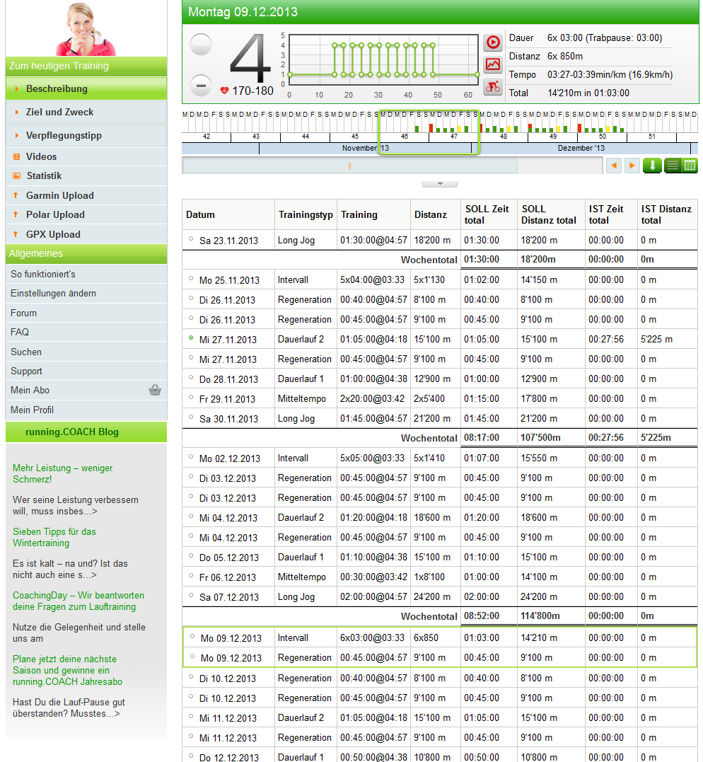 Übersicht / Bedienbarkeit: Running.Coach bietet professionelle Trainingsplanung für € 49 pro Quartal an. Die iPhone App wurde ergänzend zur Online-Plattform entwickelt und ermöglicht die Trainingseinheiten aus dem Trainingsplan zu absolvieren.