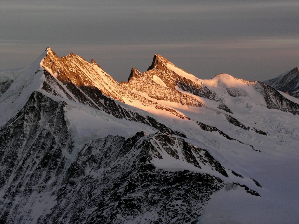 Großes Grünhorn - ein 4044 Meter hoher Berg in der Schweiz (Wallis). Der Berg befindet sich in der Gebirgsgruppe Berner Alpen. In den Alpen ist der Berg einer von insgesamt 82 Viertausendern. Der Berg wurde erstmals im Jahr 1865 erfolgreich bestiegen.Dominanz (in km)