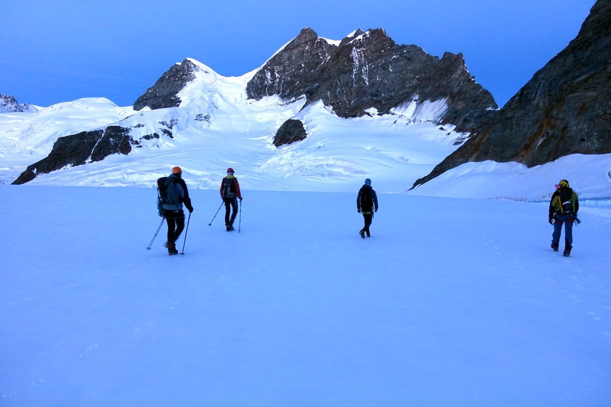 Leider viel los, weil die Besteigung von der Bergstation doch sehr kurz ist. Also definitiv kein einsamer Viertausender, auch wenn das Panorama sehr schön ist.