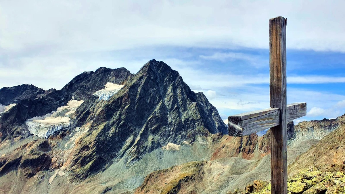 Die Parstleswand (Westgipfel) ein 3096 Meter hoher Berg in Österreich (Tirol). Der Berg befindet sich in der Gebirgsgruppe Ötztaler Alpen.