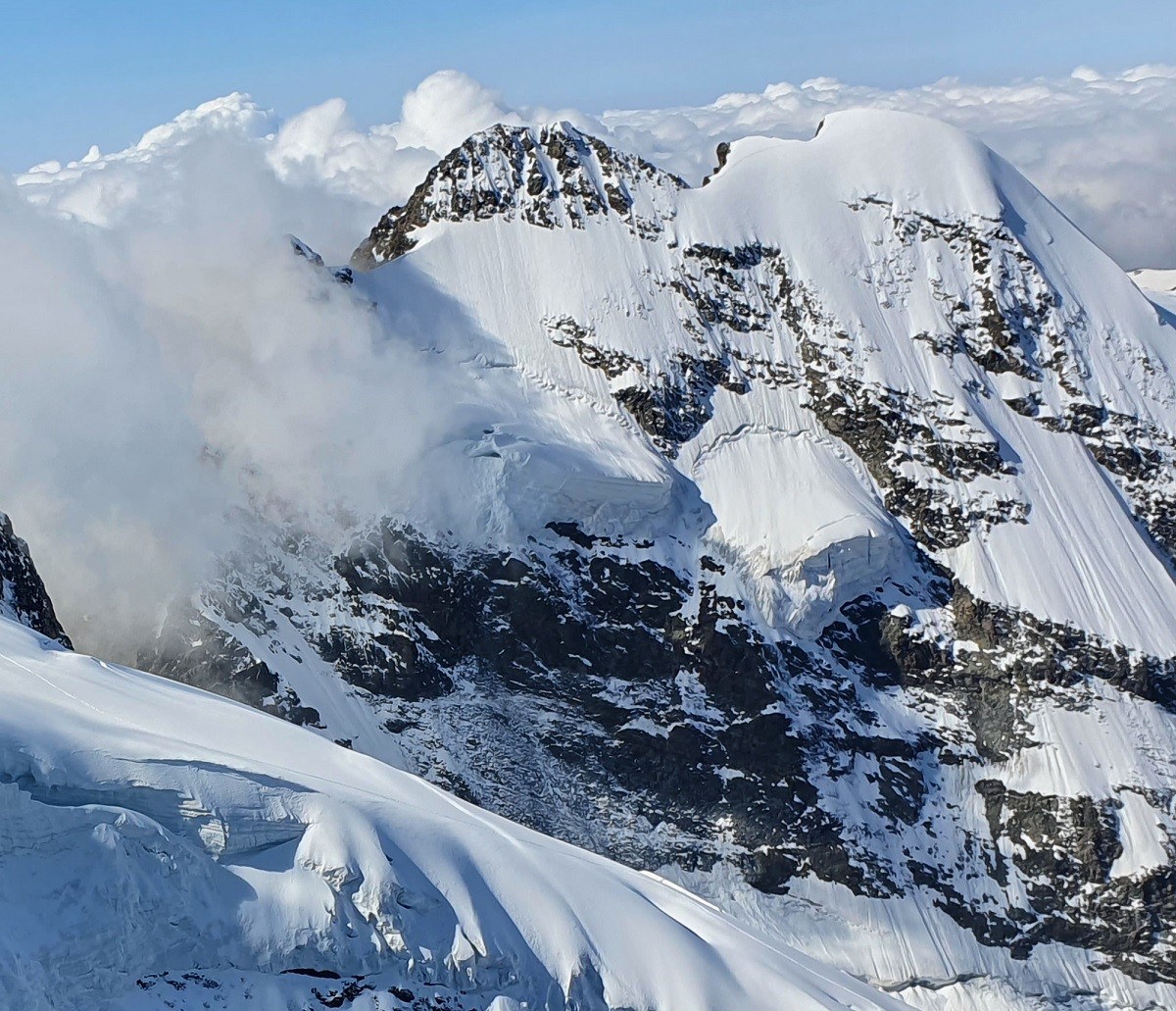 Piz Roseg - ein 3937 Meter hoher Berg in der Schweiz (Graubünden). Der Berg befindet sich in der Gebirgsgruppe Bernina-Alpen. Der Berg wurde erstmals im Jahr 1865 erfolgreich bestiegen.
