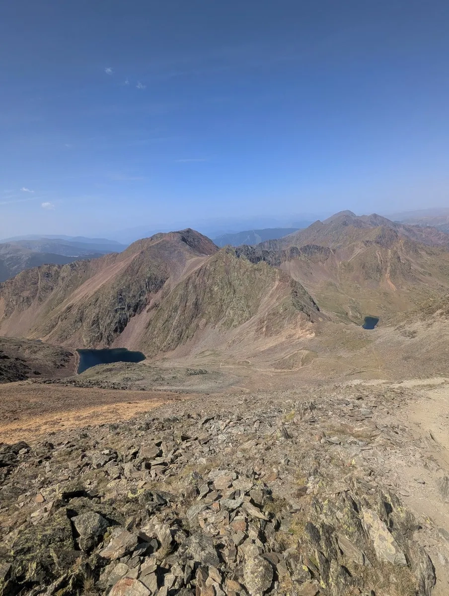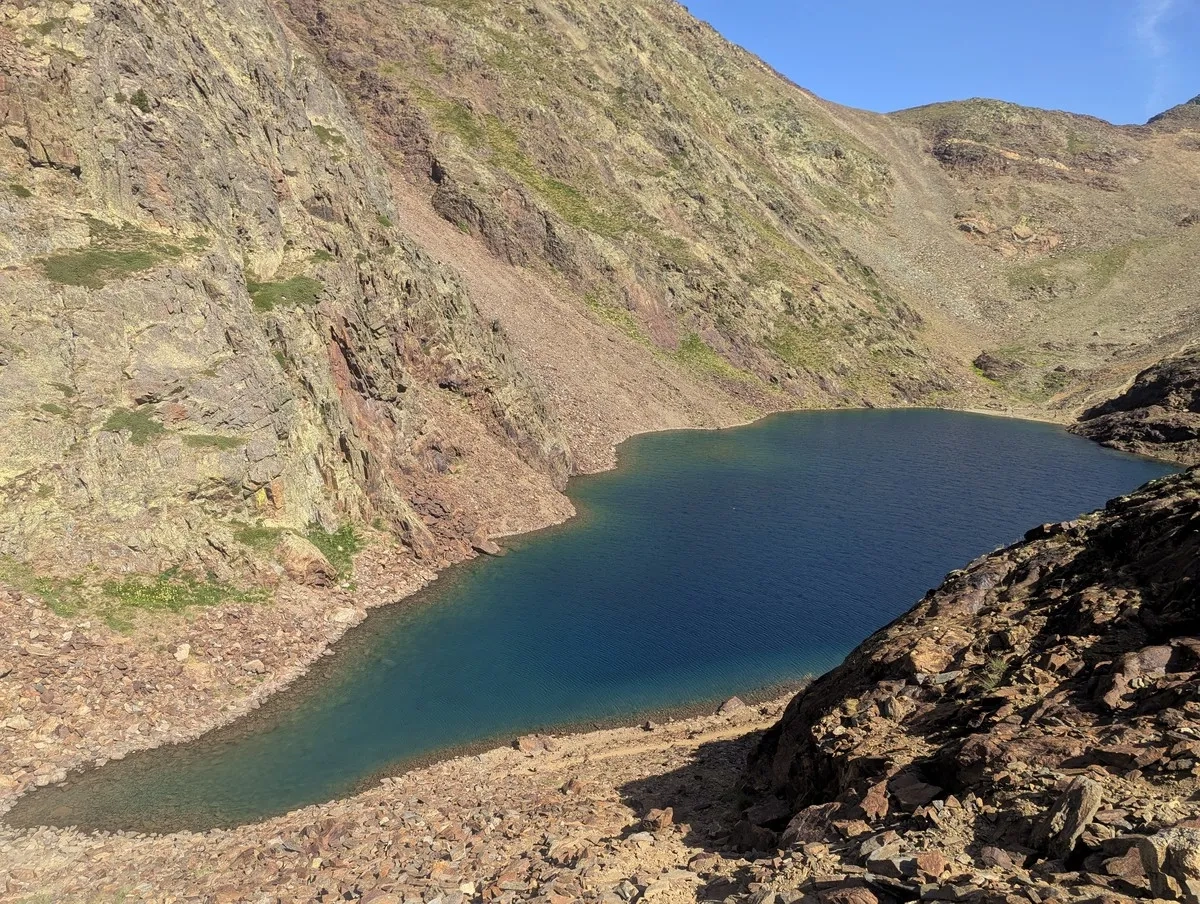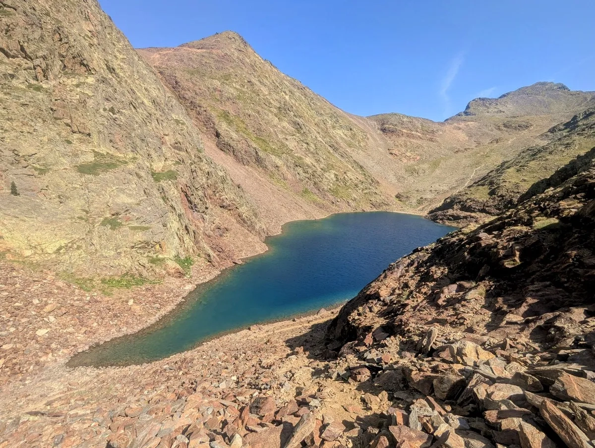 - Bevor es nach Süden zurück zum Estany Negre geht, lohnt sich ein kleiner Abstecher von etwa 10 Höhenmetern zum Portella de Beiau, der Grenze zwischen Andorra und Spanien, mit Blick auf den spanischen Bergsee Estany de Baiau – ein echter Geheimtipp für Panoramafans.