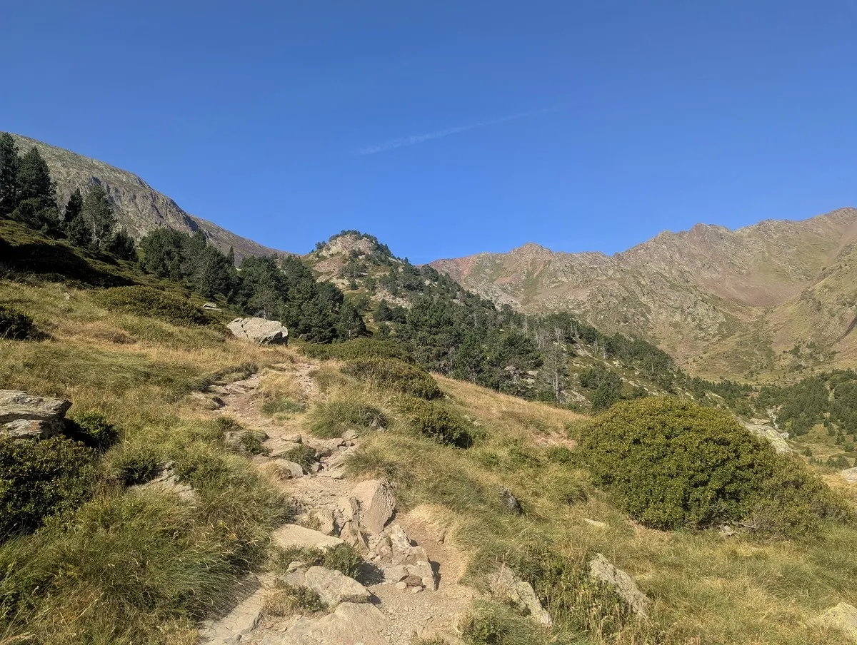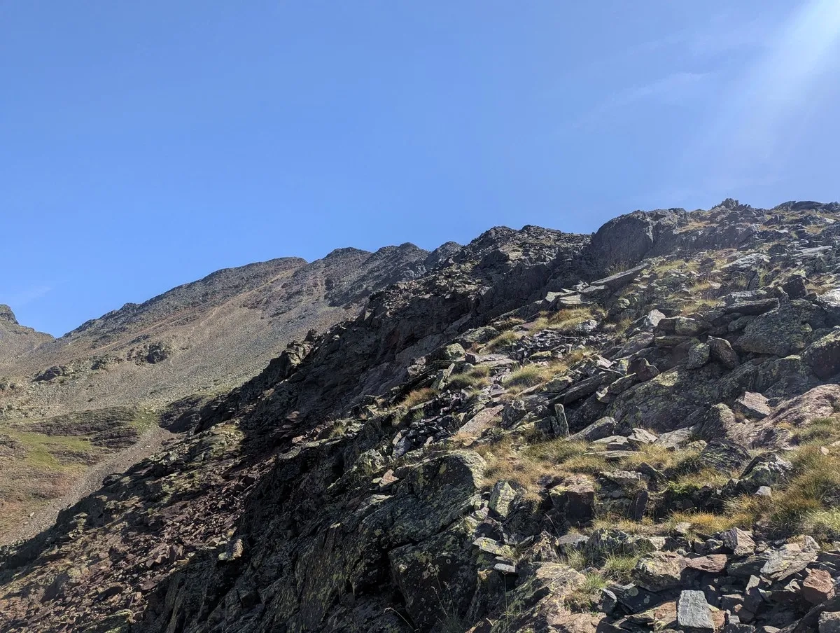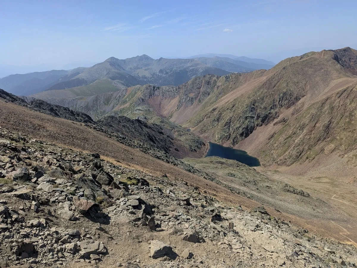 - Bevor es nach Süden zurück zum Estany Negre geht, lohnt sich ein kleiner Abstecher von etwa 10 Höhenmetern zum Portella de Beiau, der Grenze zwischen Andorra und Spanien, mit Blick auf den spanischen Bergsee Estany de Baiau – ein echter Geheimtipp für Panoramafans.