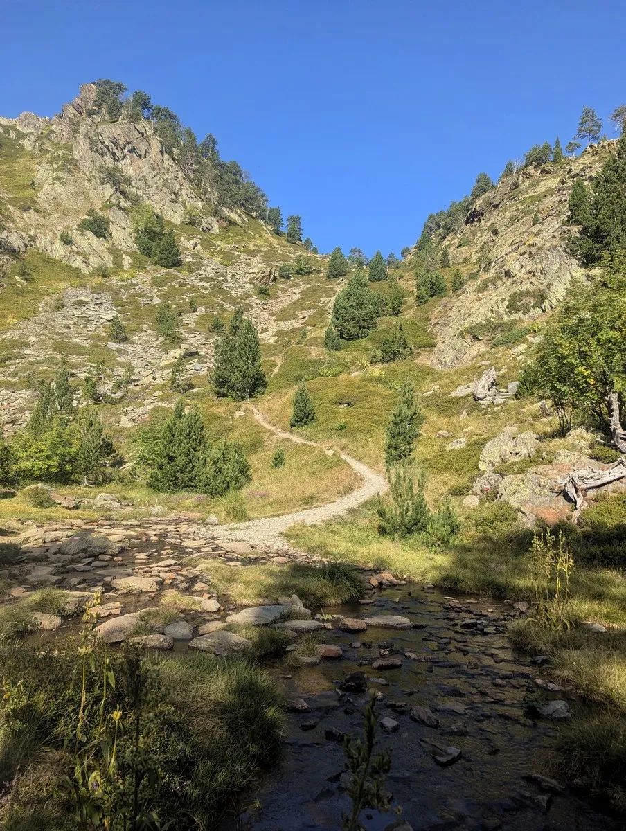 - Los geht's über eine kurze Forststraße und dann auf einem gut ausgeschilderten Wanderweg, der links haltend zum Refugi de Comapedrosa führt.