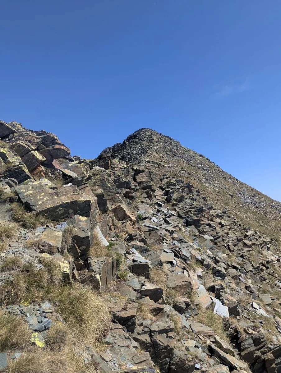 - Auf gut 2.700 Metern ist man am Gipfelkamm angekommen, der die letzten 200 Höhenmeter entweder direkt am Grat oder leicht darunter nördlich zum Gipfel führt.