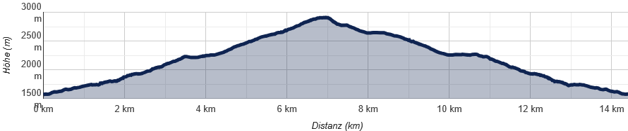 - Nach dem Collet folgt ein längeres flaches Stück, bevor der Weg steiler wird und bis auf etwa 2.500 Meter ansteigt, anschließend führt er rechts zu einem kleinen See.