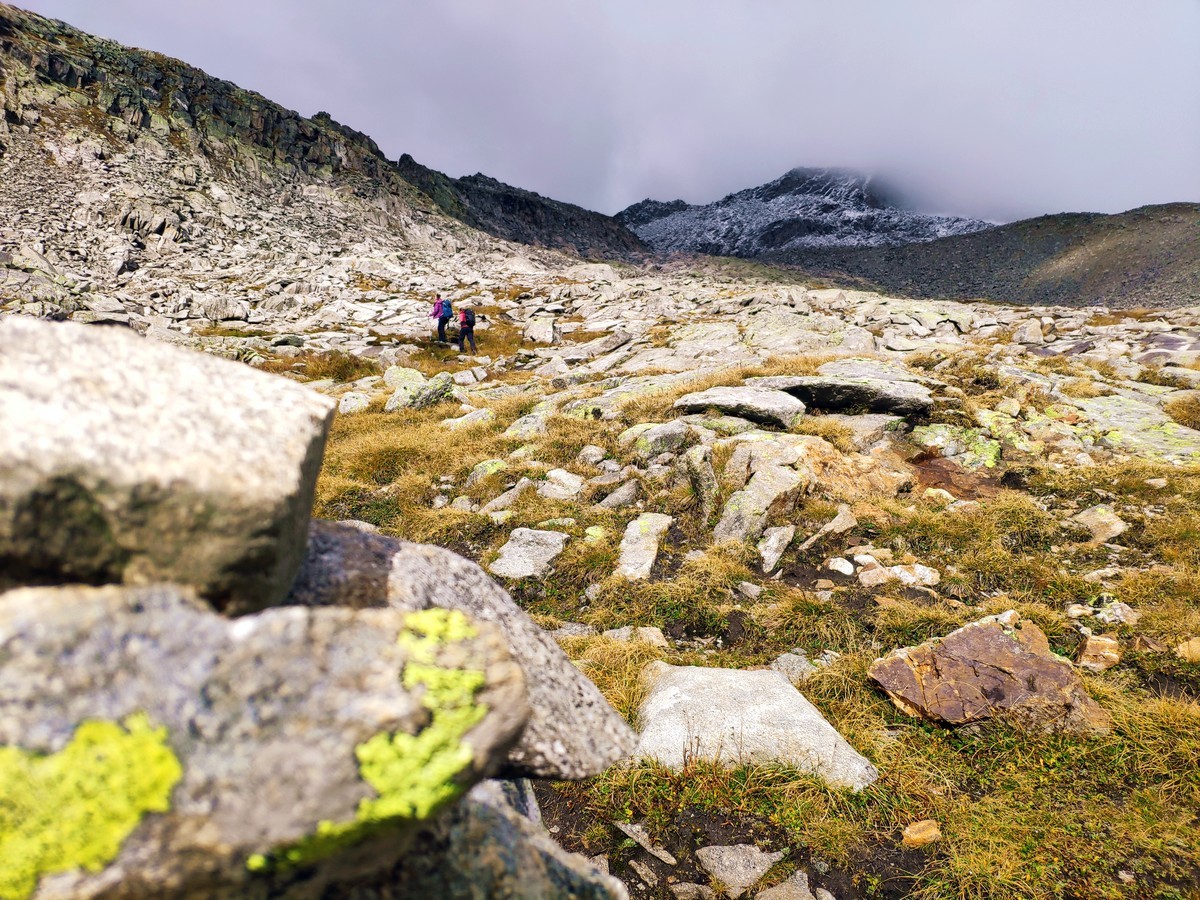 - Dem markierten Weg aus Blockgestein bis zur Schneescharte bzw. zum kleinen See zwischen Grawand und Grawandkofel gehen.