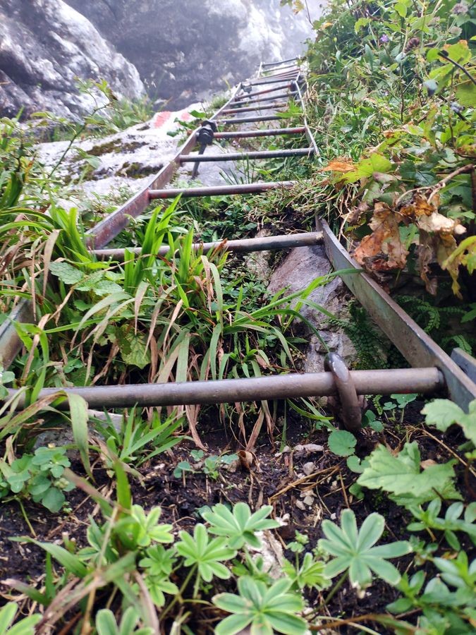 Aufgrund der ausgesetzten Route und künstliche Sicherungsmöglichkeiten ohne Seil zu empfehlen. Jedoch nur für Erfahrene. Ansonsten gute Bergschuhe oder Trailschuhe mit stabilem Grip.