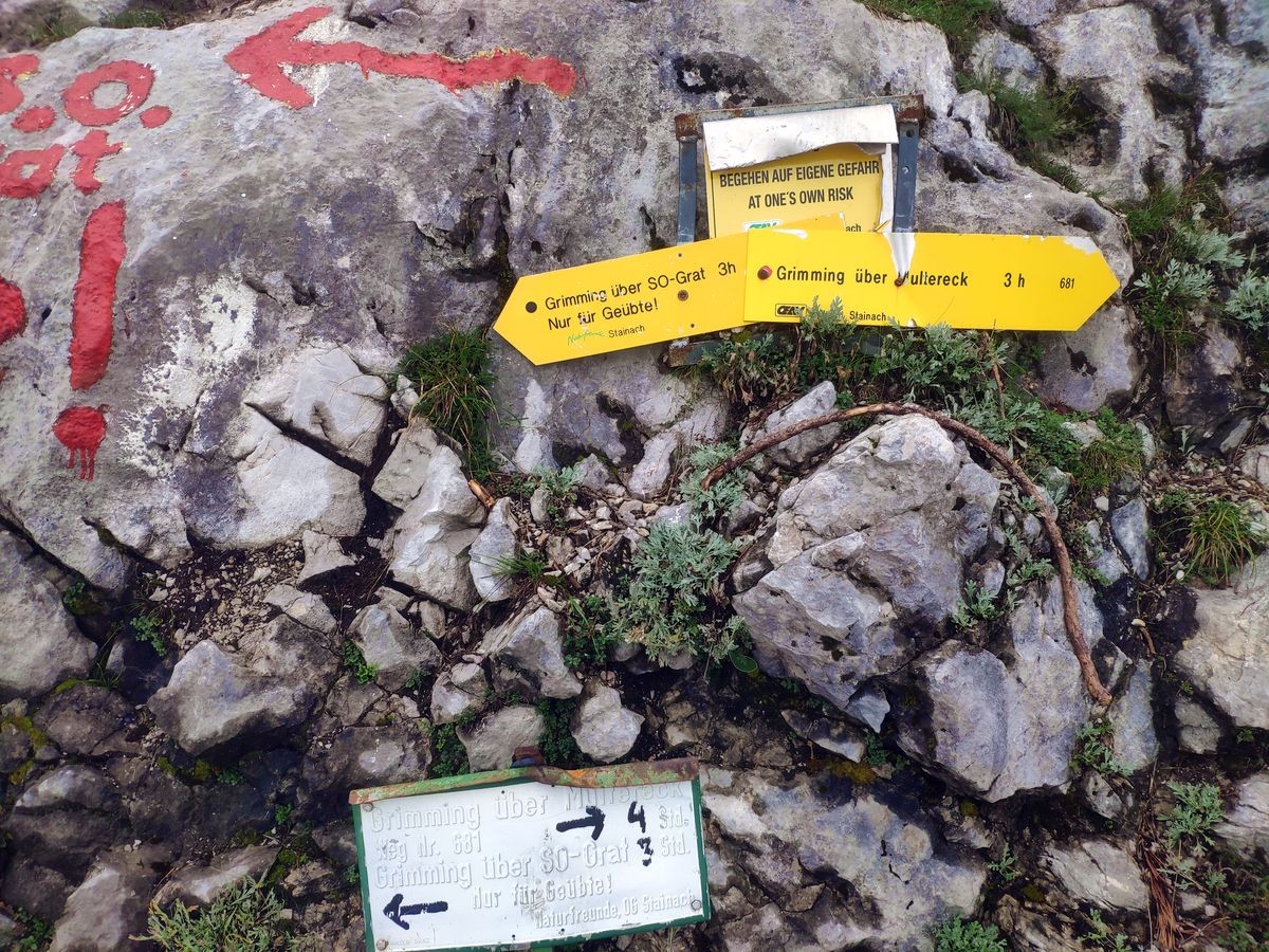 Aufgrund keinerlei Markierung am Schneegrubengrat ist die Orientierung eine zusätzliche große Herausforderung. Definitiv ein spannender Aufstiegsweg auf den Grimming.
