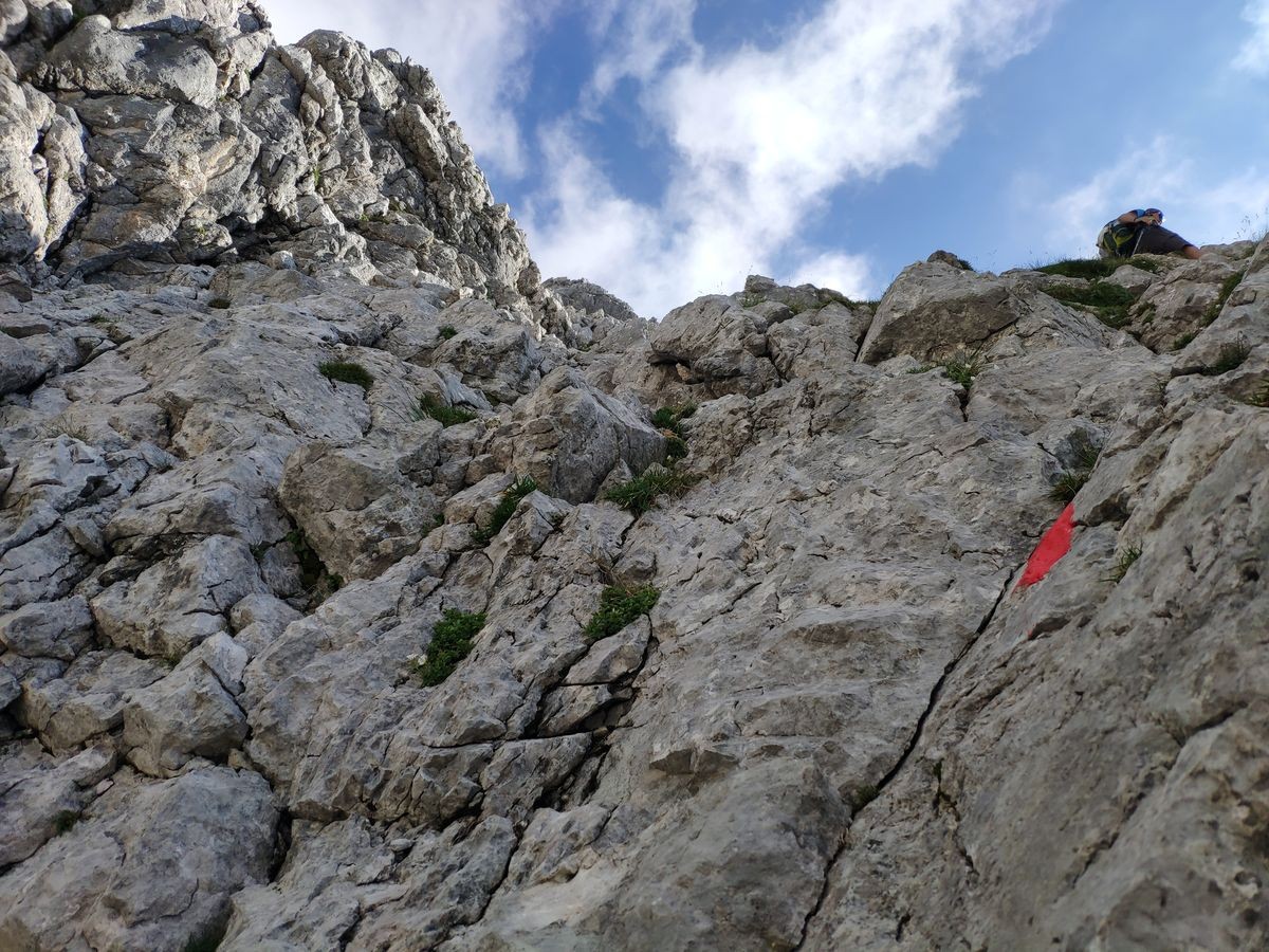 Der Aufstieg und Abstieg hat einige Kletterstellen (bis zu II, evtl. III).