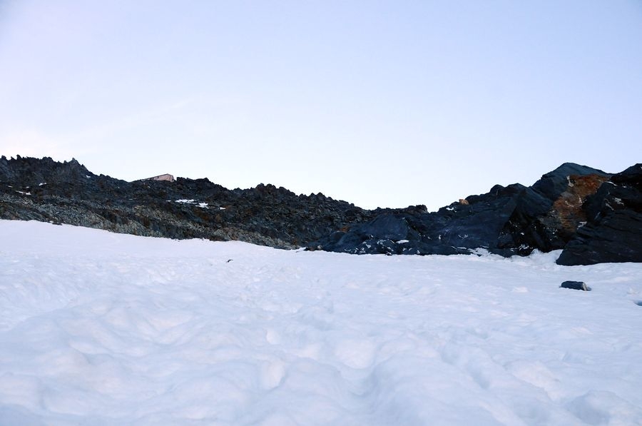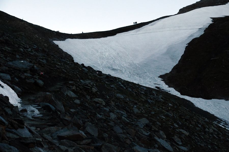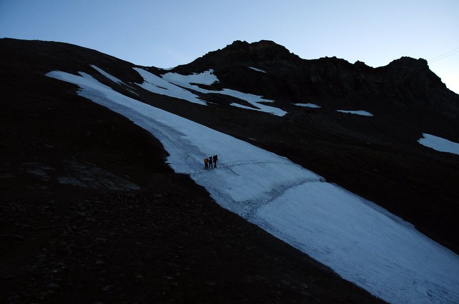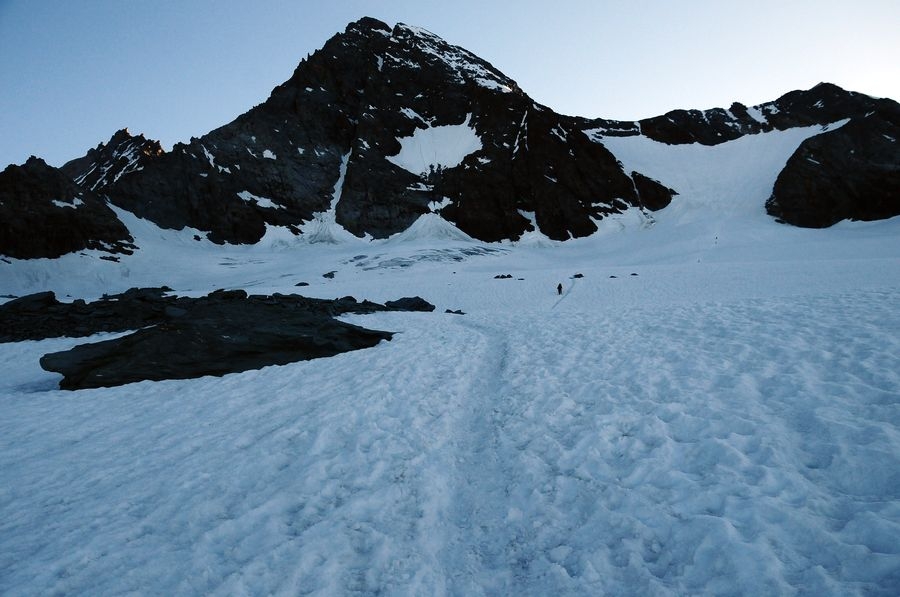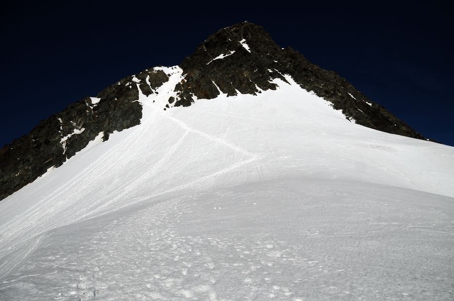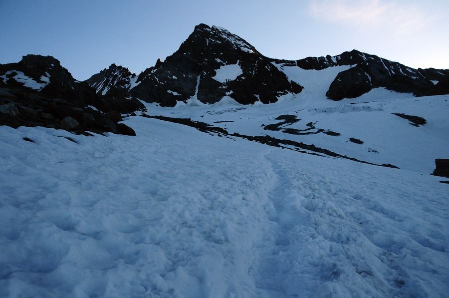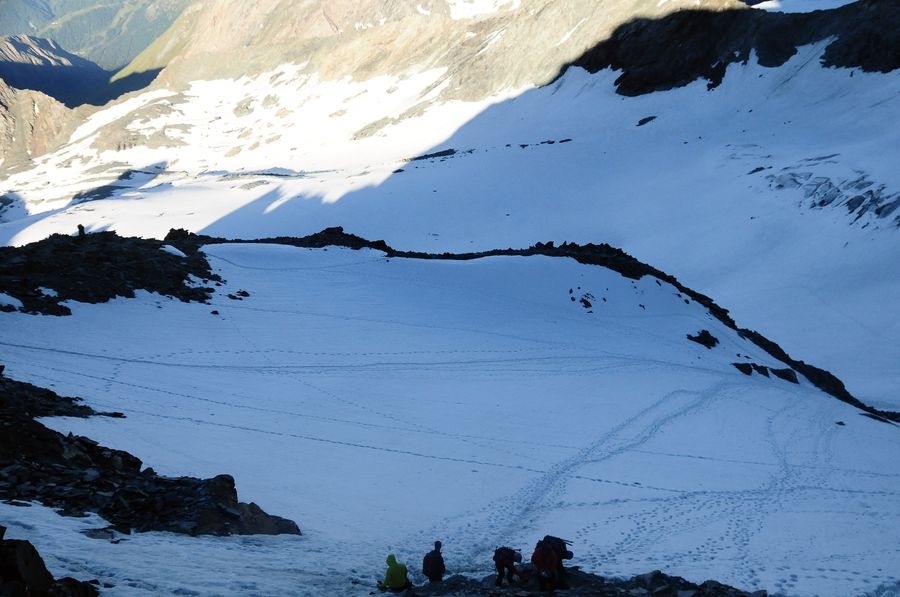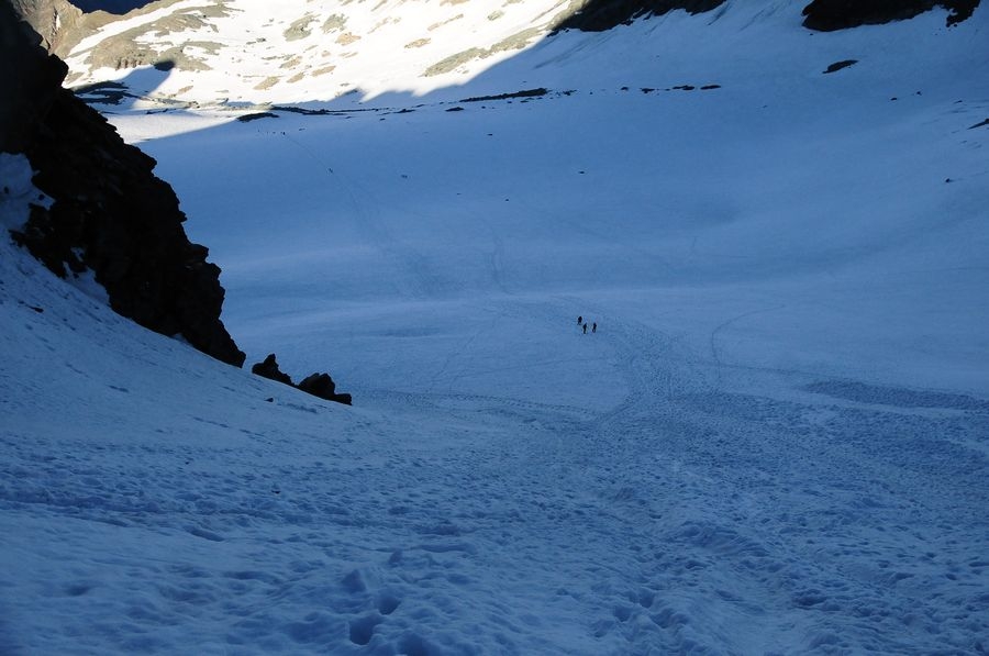 Ein etwas steilerer Anstieg geschafft. Geht aber noch problemlos ohne Steigeisen.