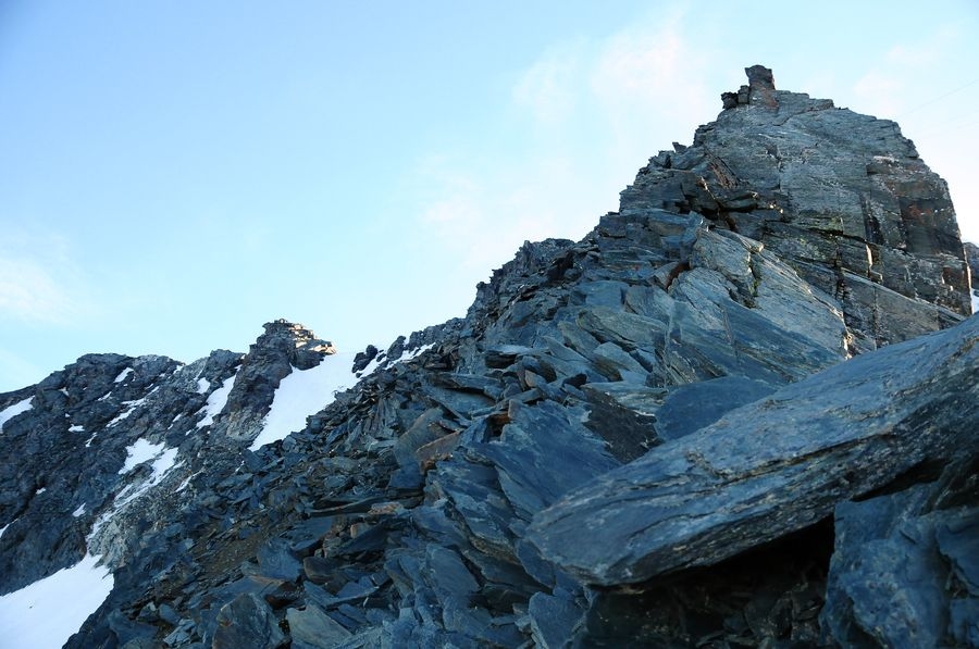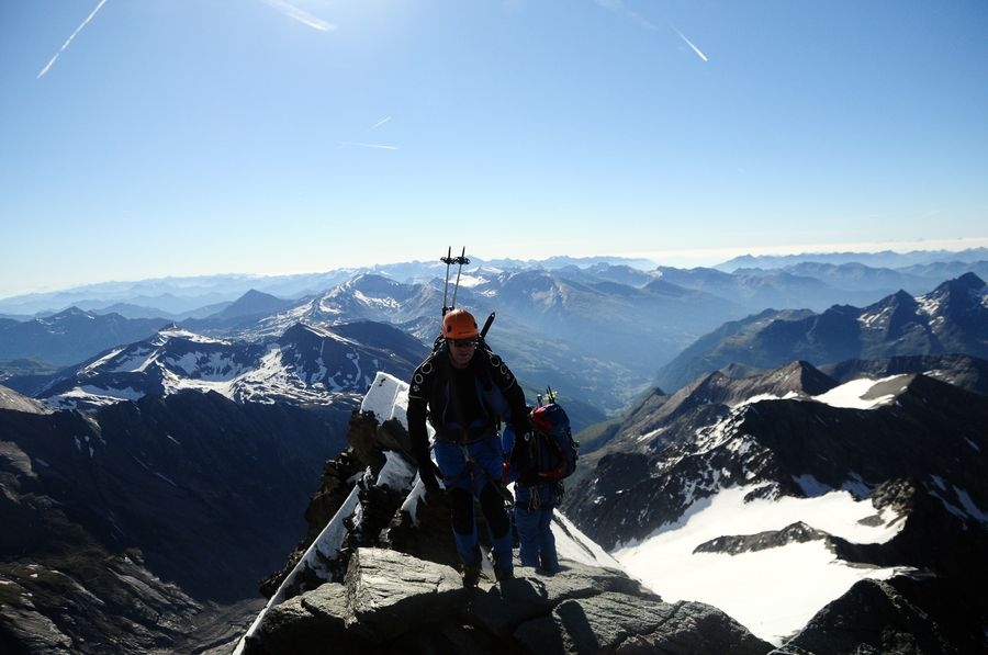 Auf dem Retourweg. Die wohl Schlüsselstelle für viele. Der kurze, schmale Grat von Kleinglockner zum Großglockner. An windigen Tagen kann einem da schon mal mulmig werden.