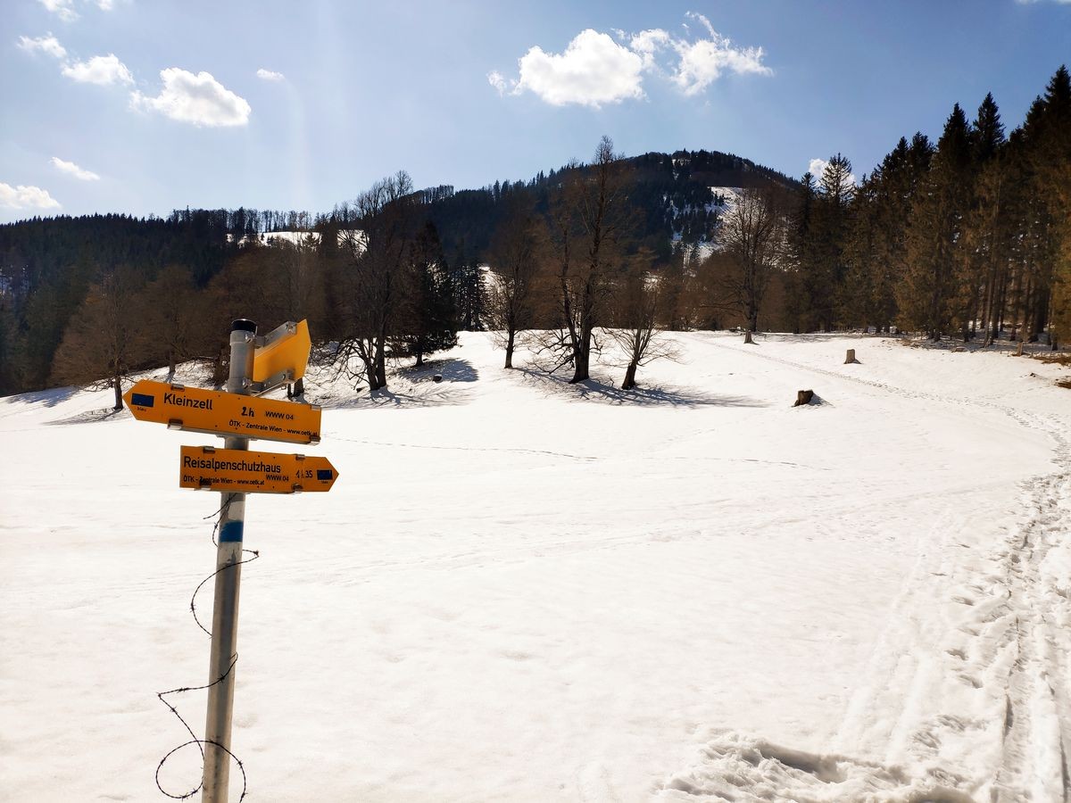 • Nun von der Reisalpe wieder auf selbigen Weg bis kurz nach die Kleinzeller Hinteralm bis zu einem Wegschild (45 Minuten)