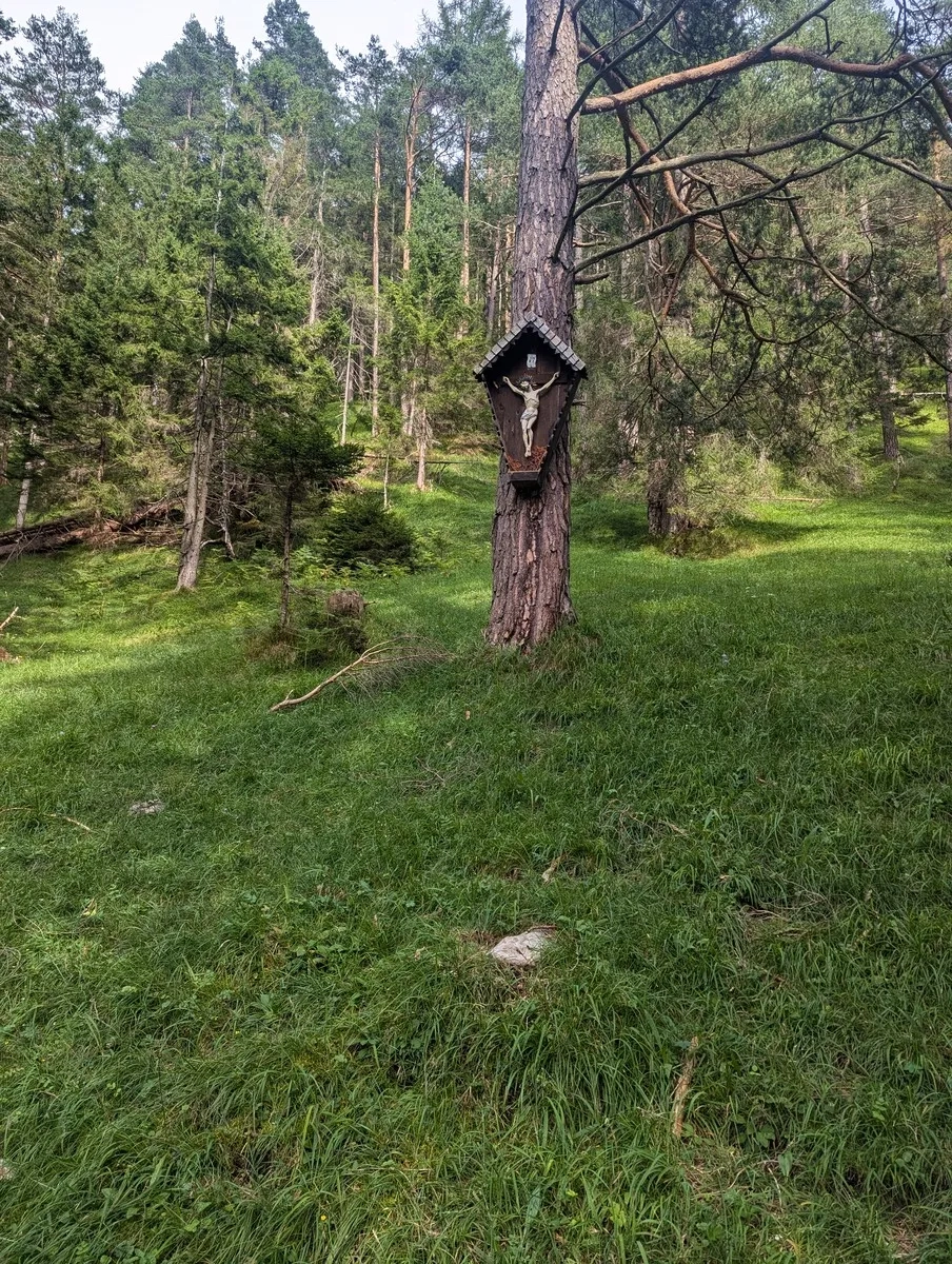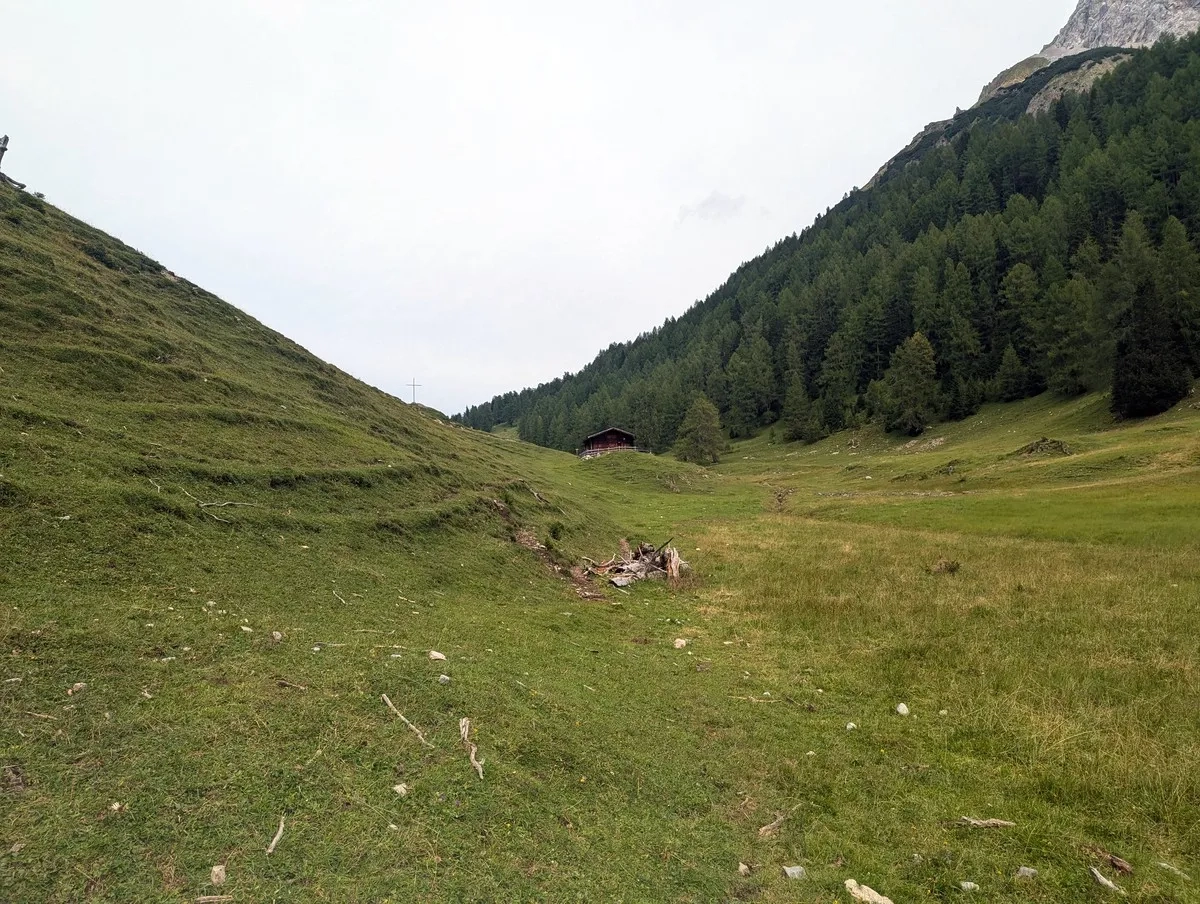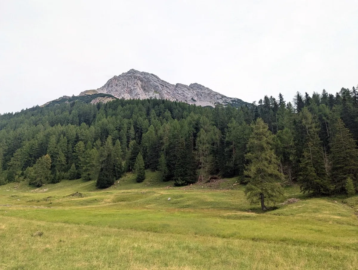 - Auf etwa 1.750 Metern Höhe kurz der Forststraße folgen, bis eine Beschilderung nach rechts führt. Geradeaus wäre der Weiterweg zur Nassereither Alm, die aber erst im Abstieg besucht wird.