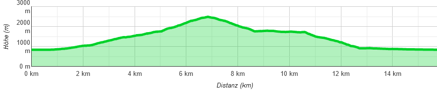 Die Länge der Tour stellt die größte Herausforderung dar, da rund 1.700 Höhenmeter und 16 Kilometer zu bewältigen sind. Besonders anspruchsvoll ist der kontinuierliche Anstieg, der kaum flache Passagen bietet.