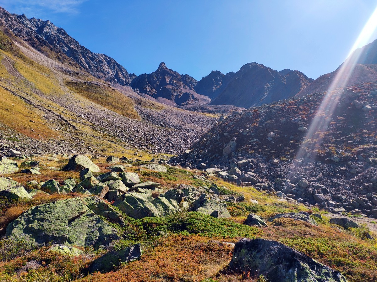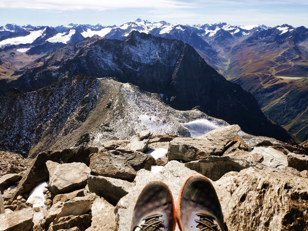 Im Sommer reichen bei guten Bedingungen Trailschuhe oder leichte Bergschuhe aus. Steigeisen werden "normalerweise" im Hochsommer nicht mehr benötigt.
