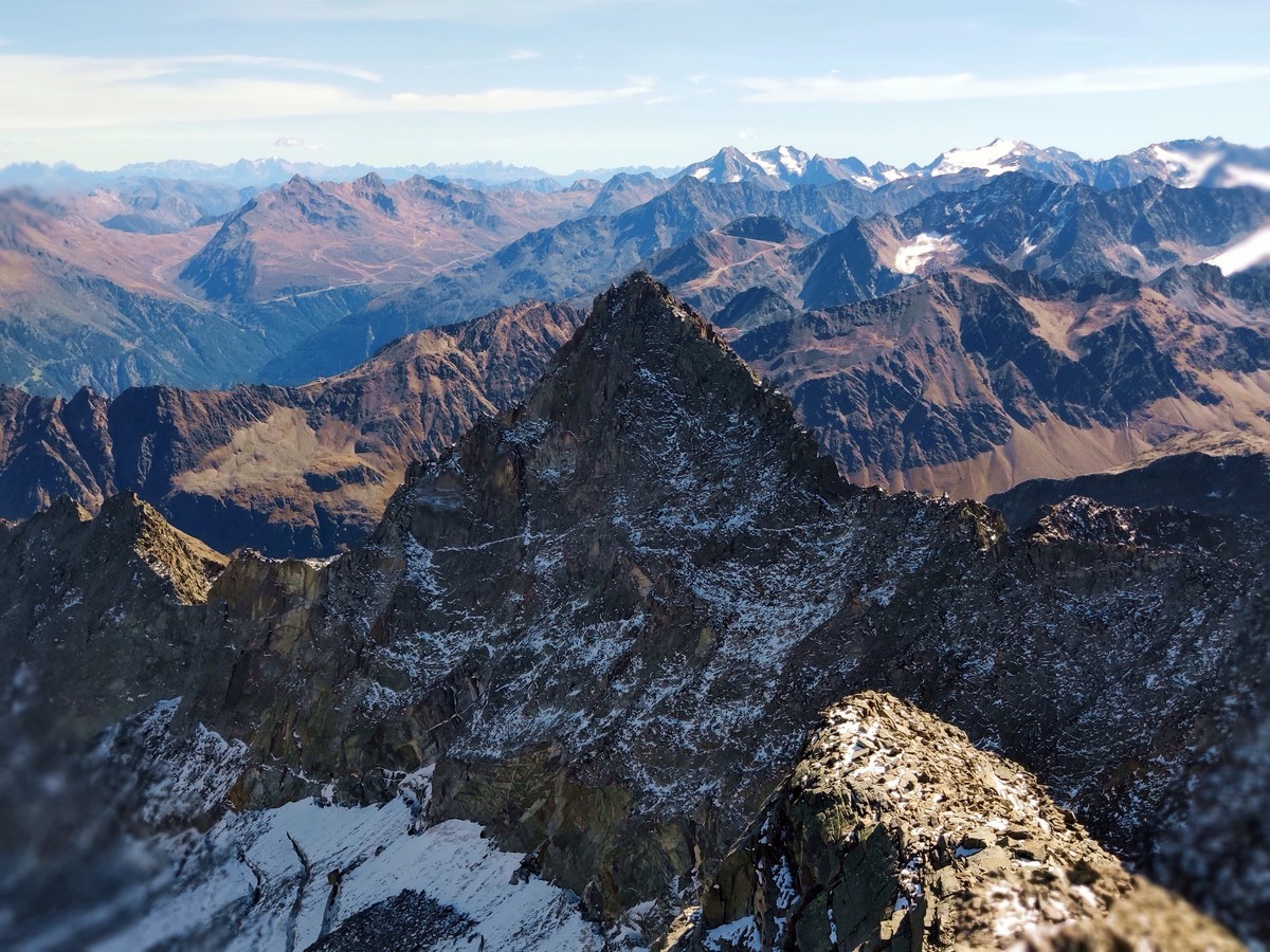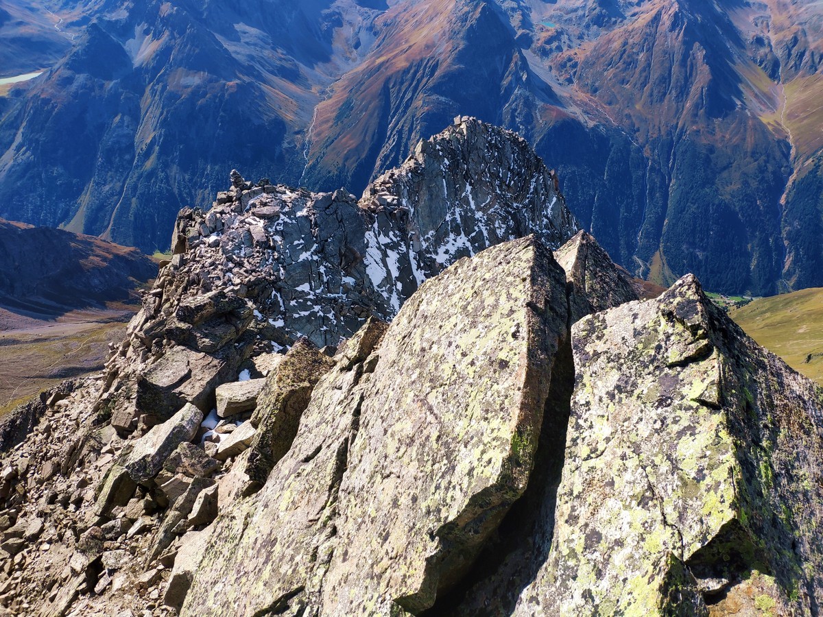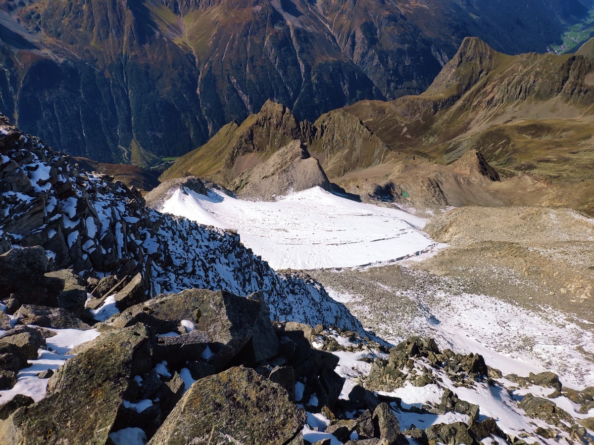 - Abstieg von der Hohen Geige über den Westgrat bis nach Gawinden (der alte Normalweg = Notabstieg sollte hingegen gemieden werden).