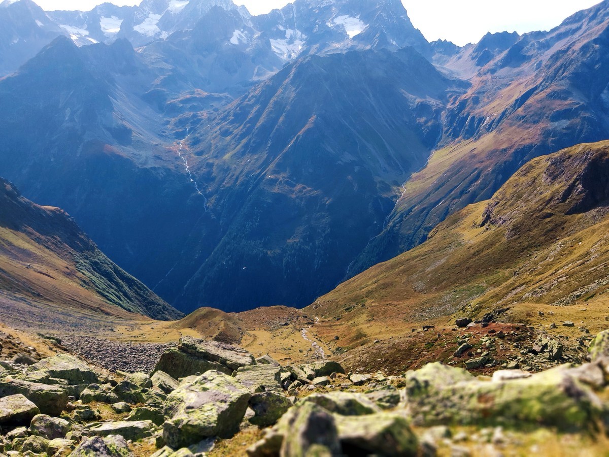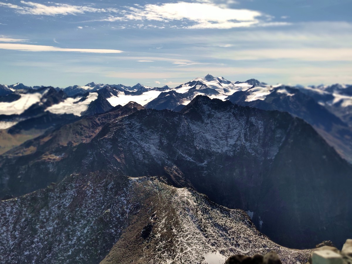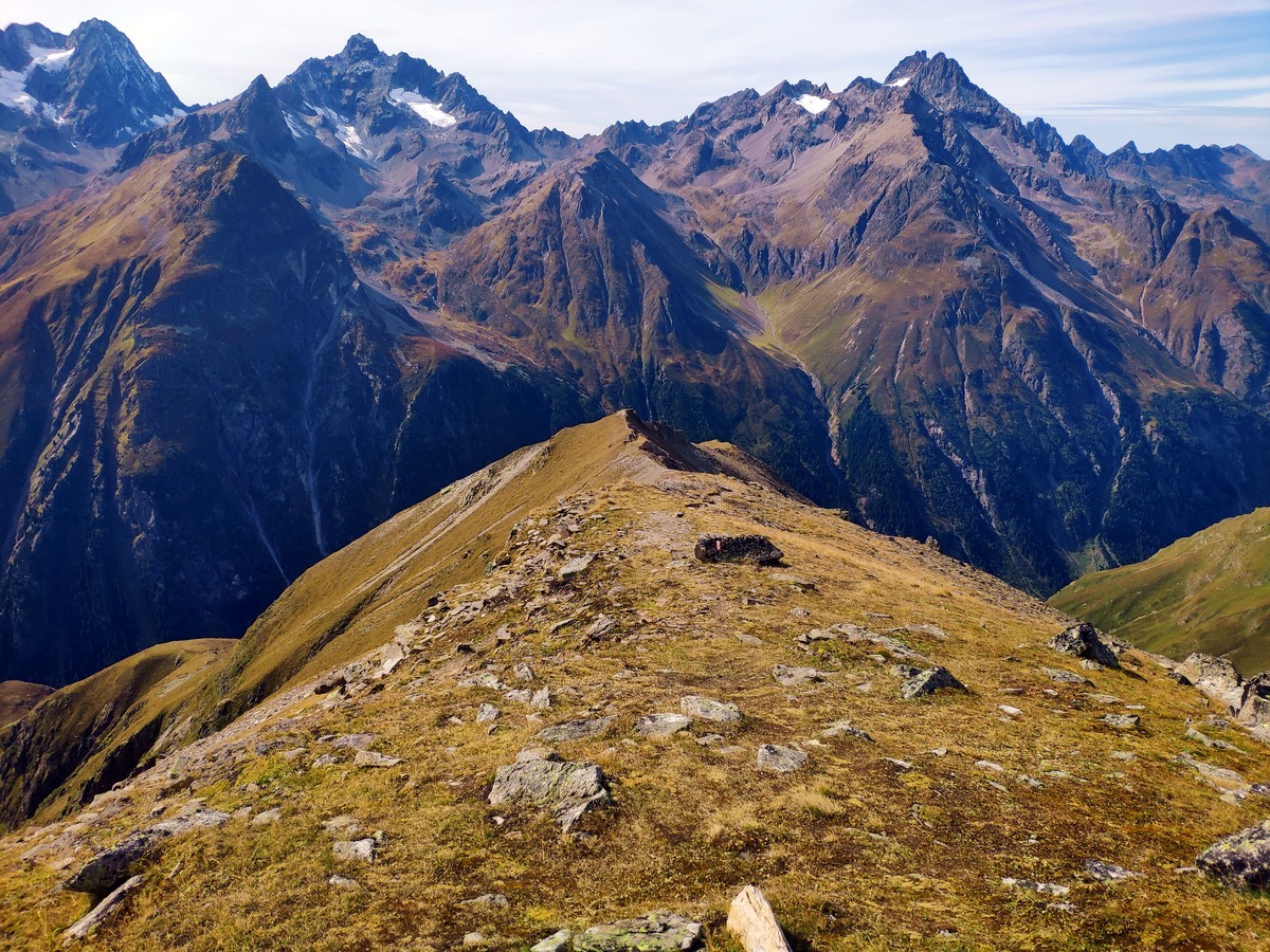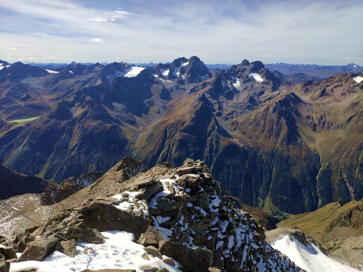- Abstieg von der Hohen Geige über den Westgrat bis nach Gawinden (der alte Normalweg = Notabstieg sollte hingegen gemieden werden).