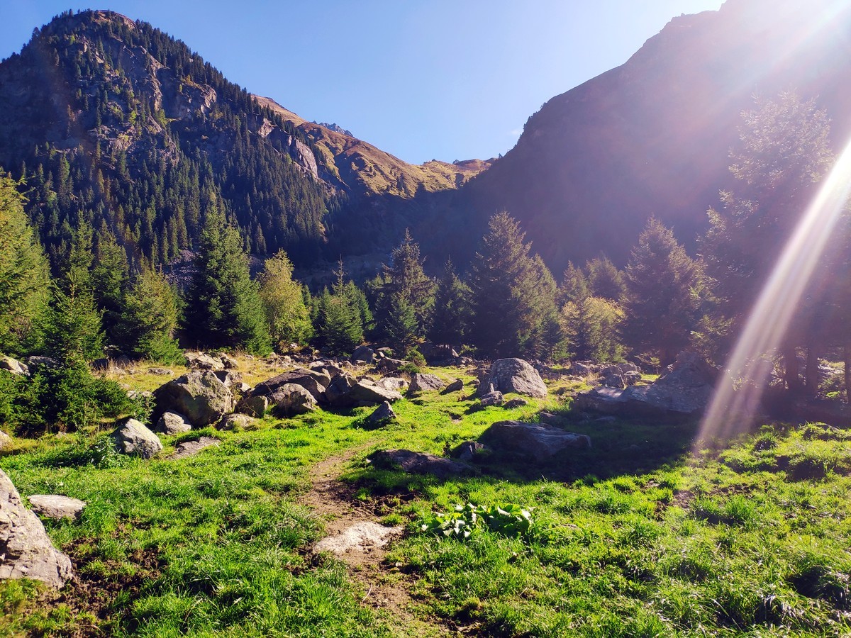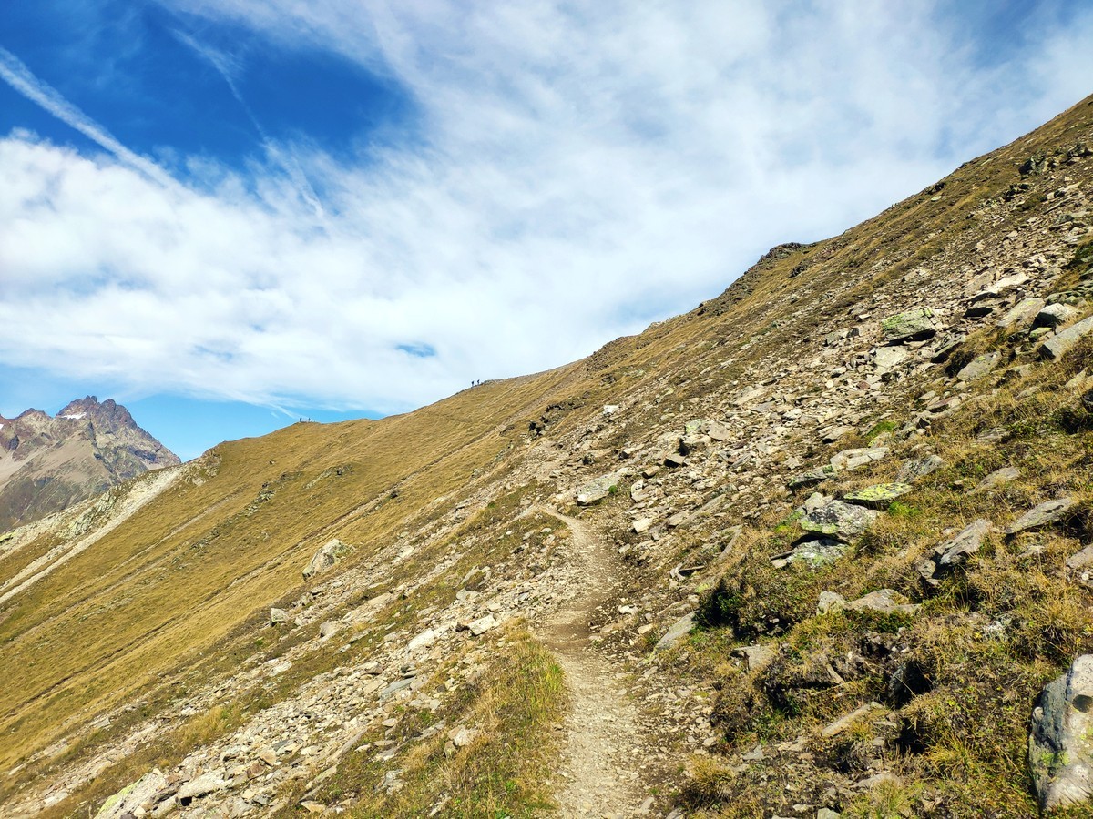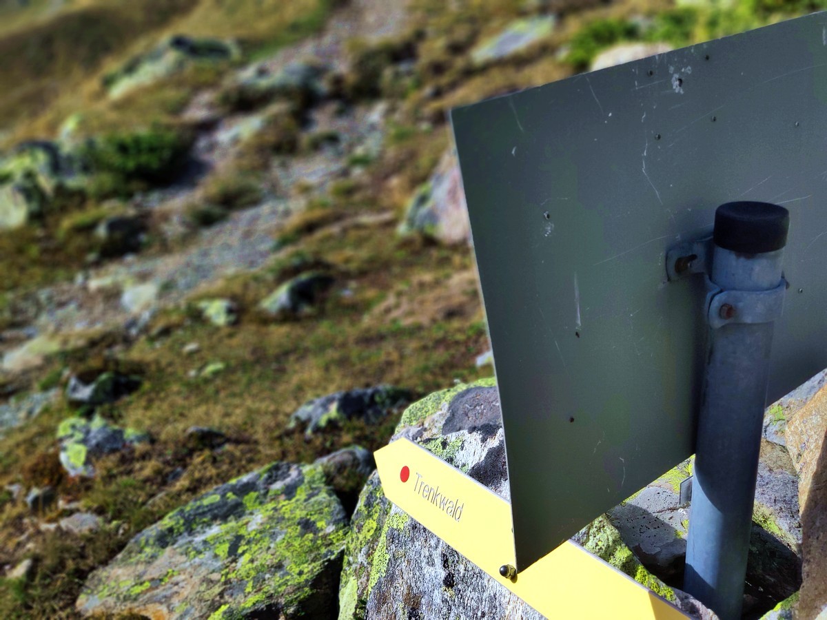 - Einige Zeit nach dem Rötkarljoch befindet sich auf etwa 2.480 Metern eine Abzweigung, welche in das Tal nach Trenkwald führt.