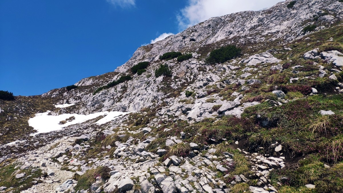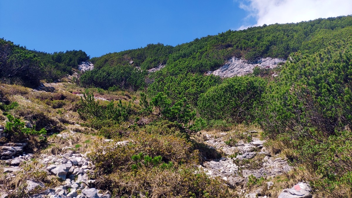 Markantestes Merkmal des Normalweges ist das durchgehend steile, aber nicht ausgesetzte Gehgelände.