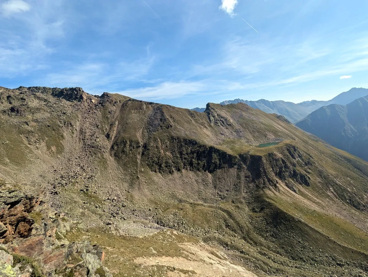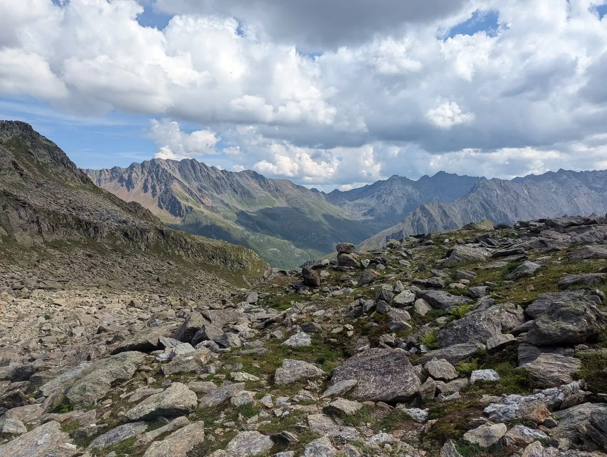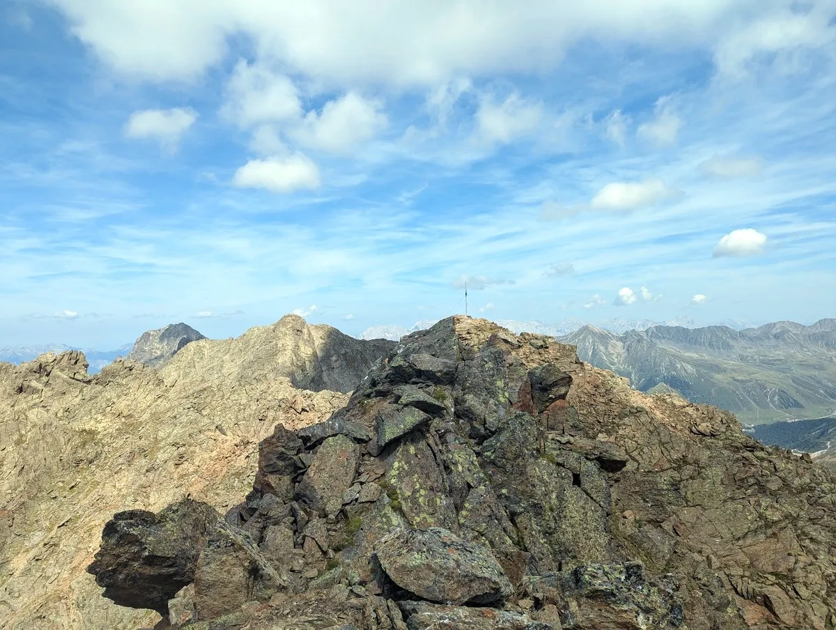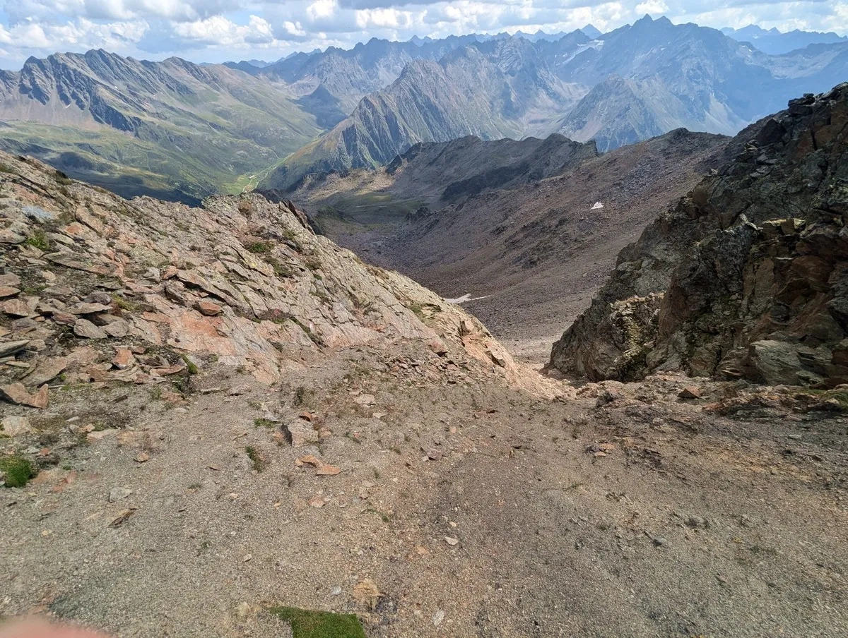 - Auf ca. 2.800 Metern Höhe kann ein erster Gratabschnitt westseitig im Blockgelände umgangen werden. Der Grat ist jedoch in der Regel gut begehbar.