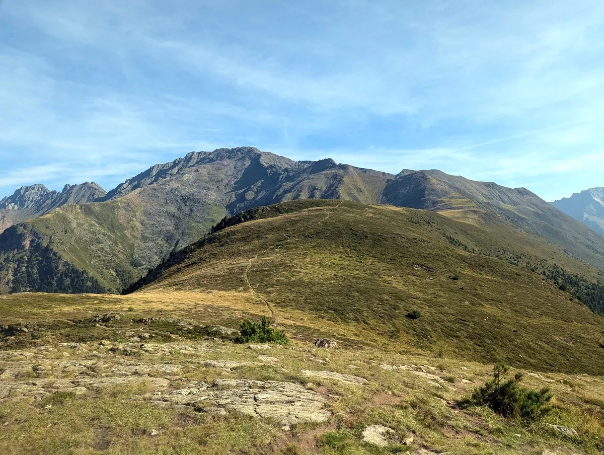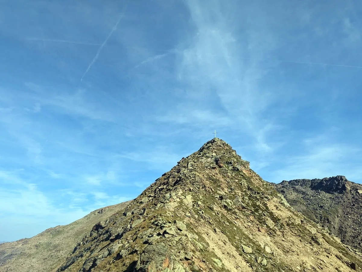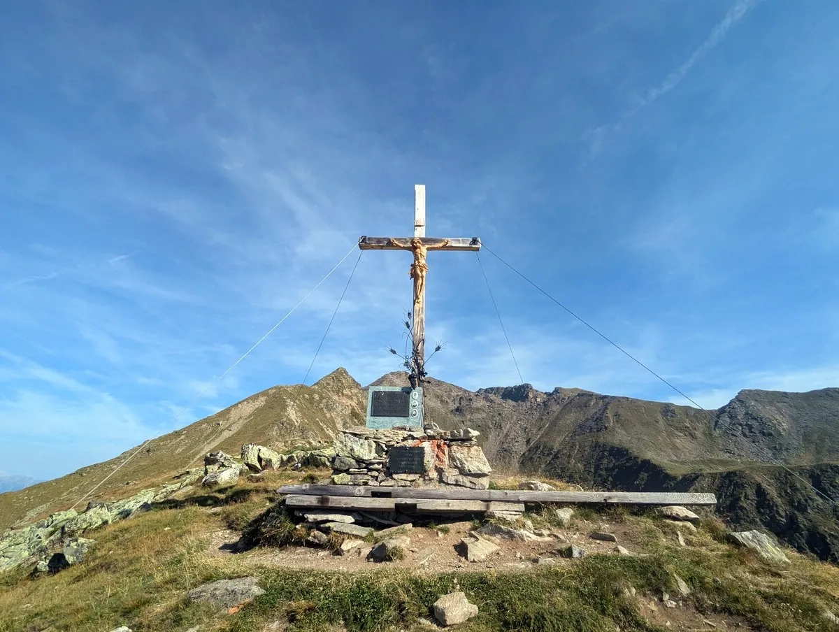 - Vom Poschachkogel aus ist bereits das Gipfelkreuz des Gruegrat im Norden zu sehen. Ein unmarkierter Pfad führt dorthin. Nach dem Gipfel wieder zurück zum Poschachkogel.