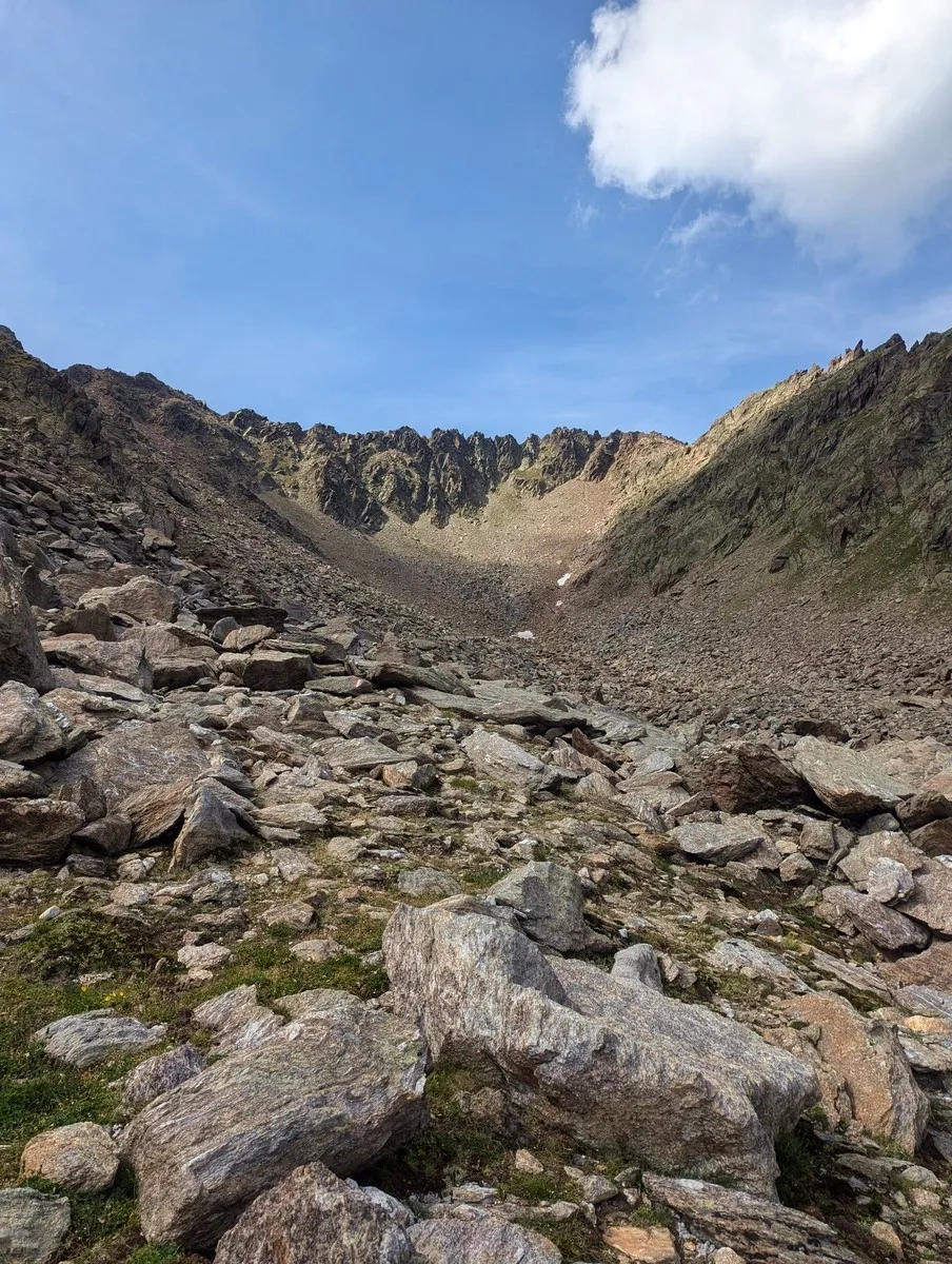 - Vom Gruesee aus weiter zum Gruejoch, wo der markierte Weg endet.