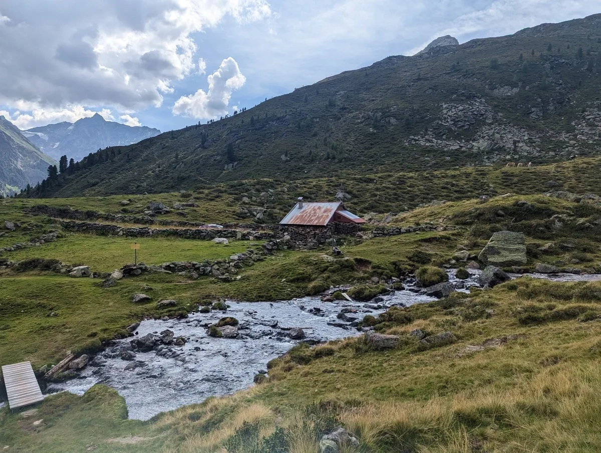 - Weiter über Blockgelände und später über einen Wanderweg zur Finstertaler Sennhütte (unbewirtschaftet). Danach ins Horlachtal, wo nun auf der Forststraße entweder zur Schweinfurter Hütte aufgestiegen werden kann oder die letzten 5 km entlang der Forststraße, vorbei am Larstighof, zurück nach Niederthai gewandert wird.
