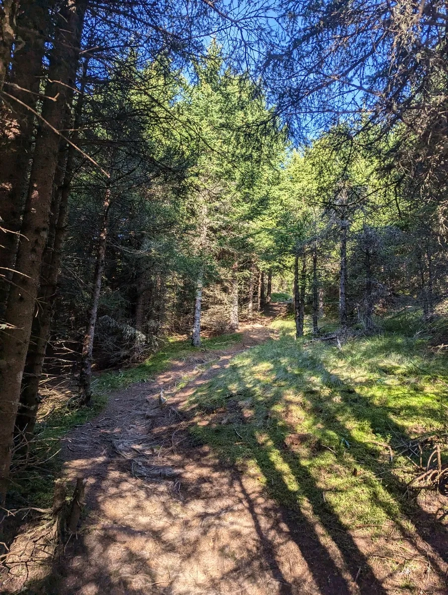 - Zunächst führt der Weg entlang einer Weide und einer Forststraße, bevor er in einen steilen Waldpfad mündet.