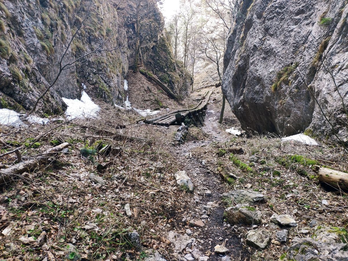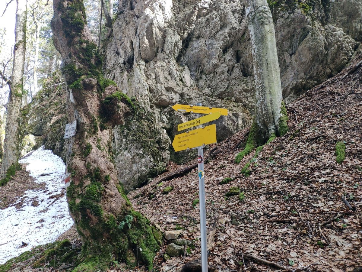 Nun in die entgegengesetzte Richtung zum Alpenfreundehaus (ca. 5 Minuten) - und dann bei der Abzweigung Richtung Klosterwappen (links) auf dem rechten Weg bleiben - Wiese (gelb markiert) - zwei kleine Hütten passieren - Waldweg zum Alpleck - dem markierten Weg zum Lackabodengraben folgen, bis in der Schlucht der Abstiegsweg wieder auf den Aufsteigsweg trifft - über den Mariensteig zurück zum Parkplatz.
