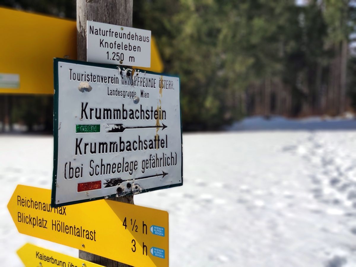 Einfache Tour vom Scheedörfl in Payerbach auf den Krummbachstein mit tollem Blick auf den Schneeberg und die Rax.