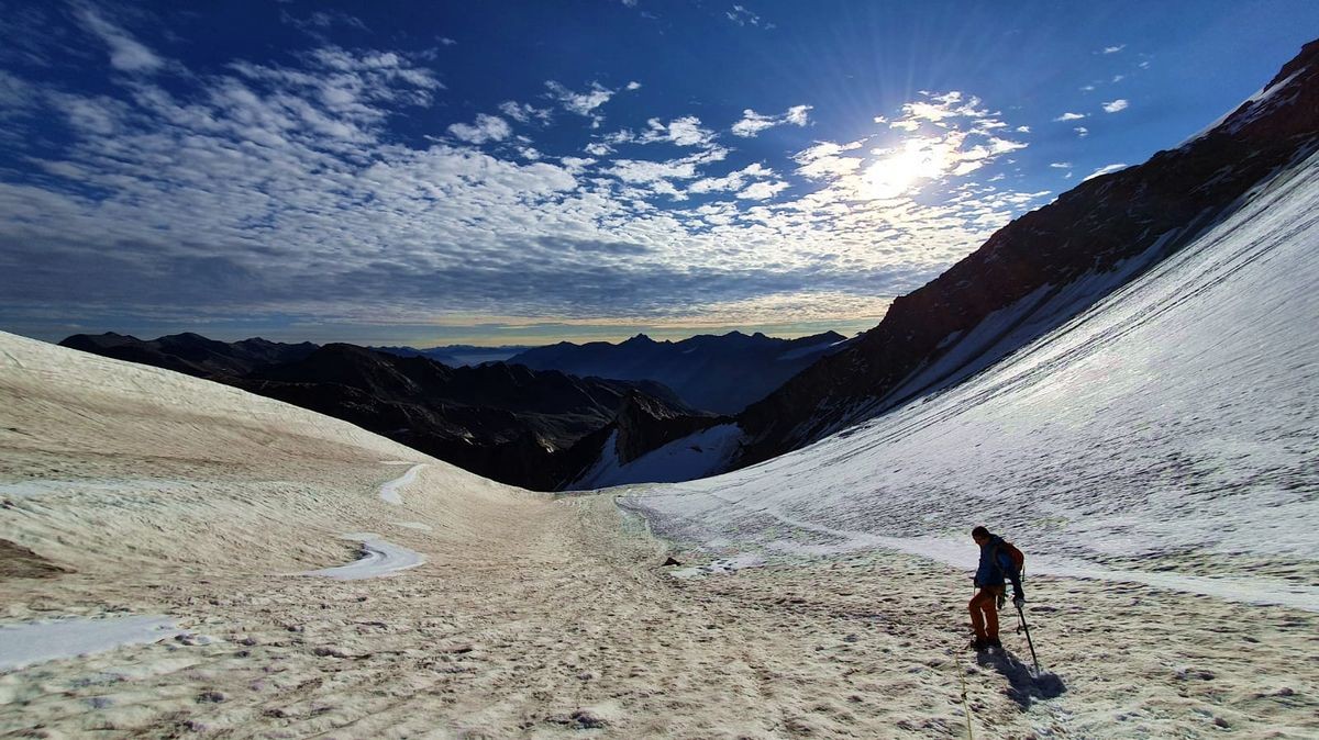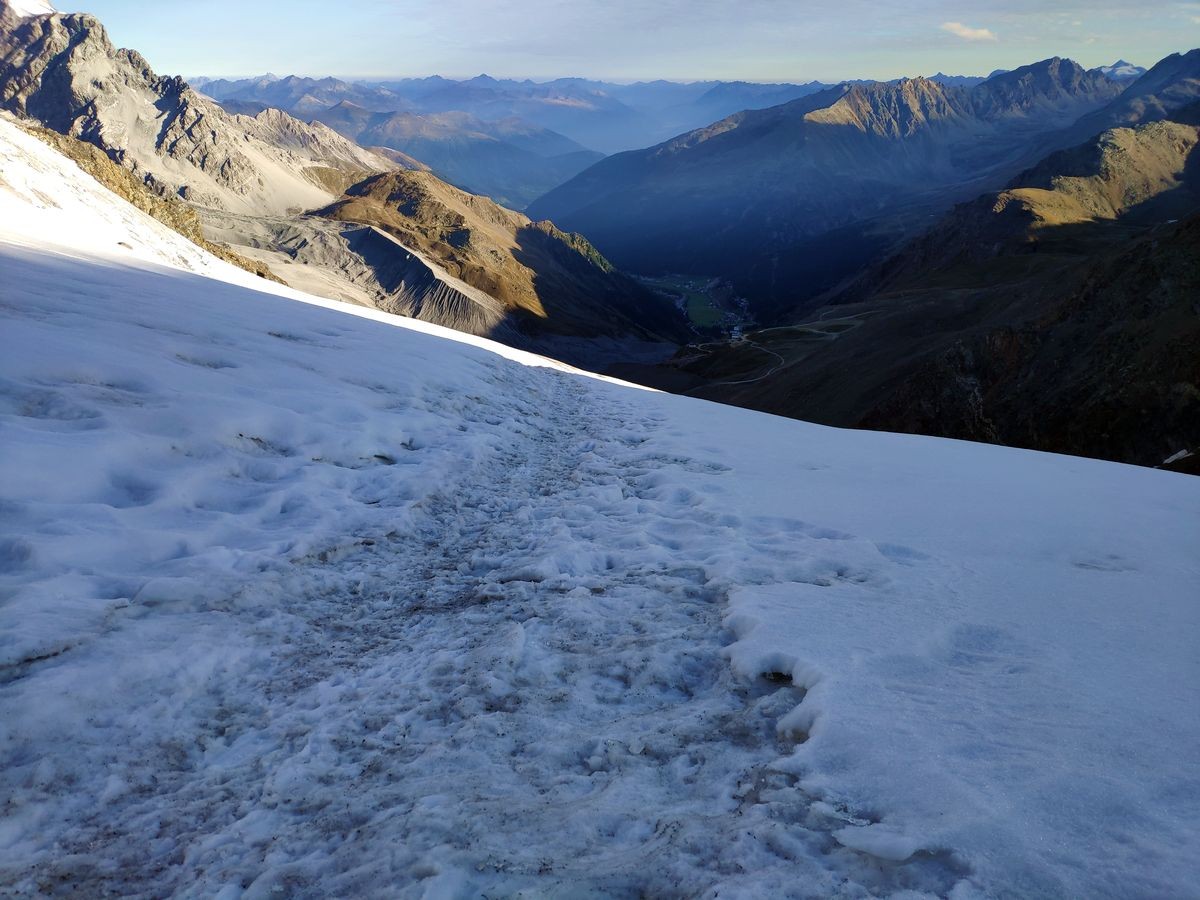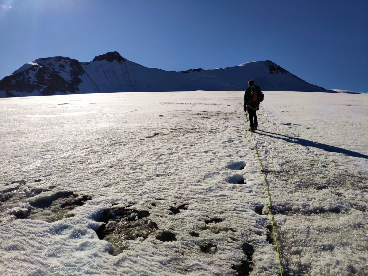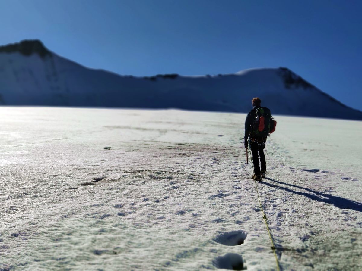 Gletscher-Ausrüstung (Steigeisen, Seil, Ausrüstung für Spaltenbergung); Expressen u.ä. nicht notwendig.