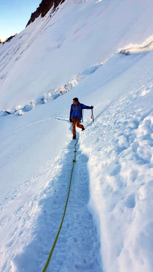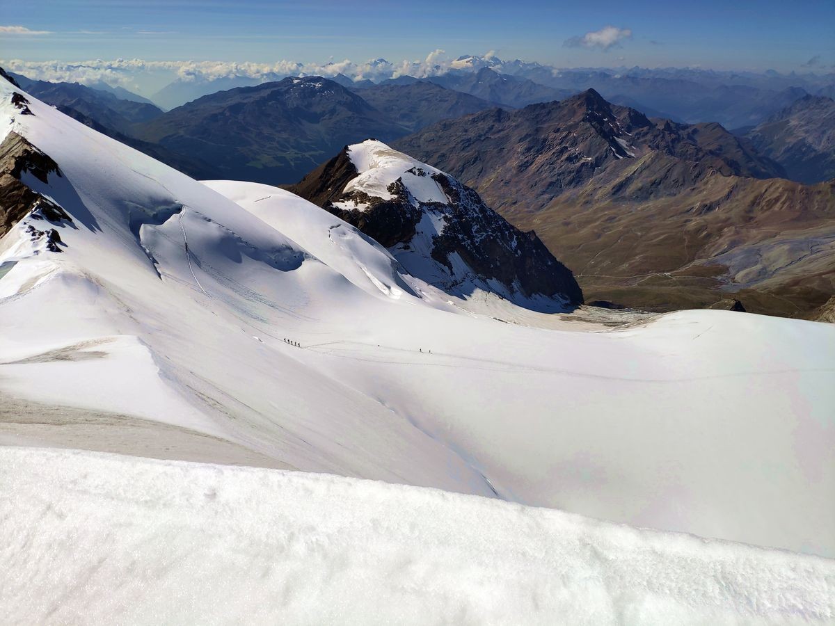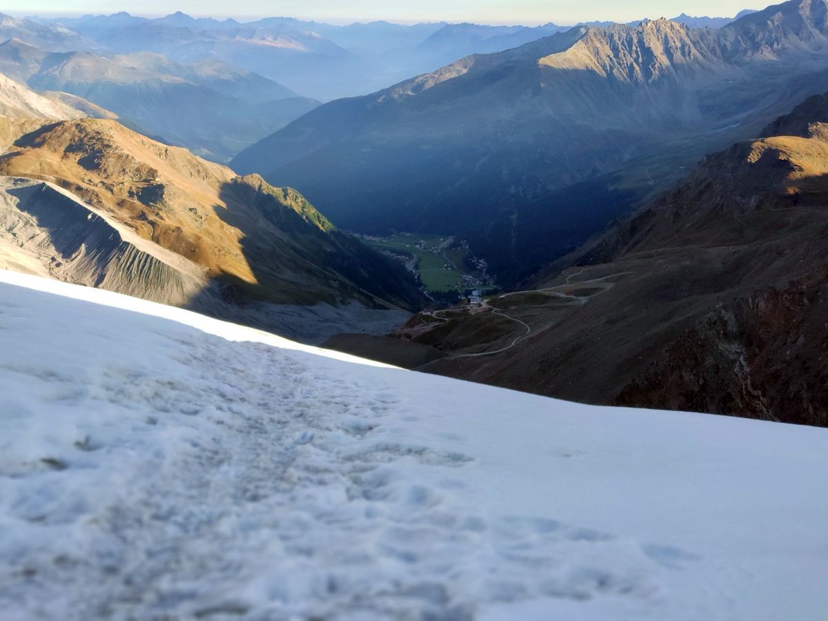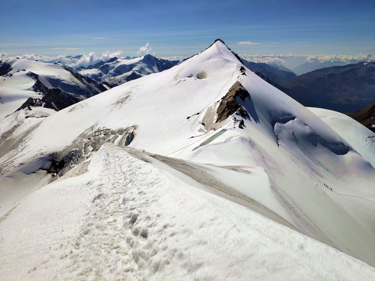 Gletscher-Ausrüstung (Steigeisen, Seil, Ausrüstung für Spaltenbergung); Expressen u.ä. nicht notwendig.