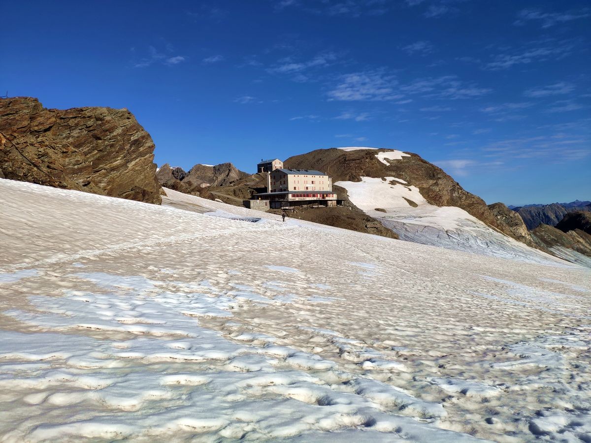 Die Route auf den Monte Cevedale führt von der Schaubachhütte über die Suldenspitze zur Casati Hütte und von da an über Gletscher zum Monte Cevedale.