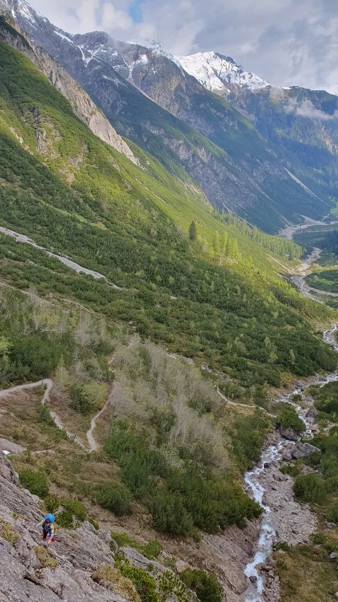 Der Ostgrat der Östlichen Plattigspitze (2.548 m) ist ein echter Geheimtipp für Kletterfreunde, die nicht auf überlaufenen Routen unterwegs sein möchten. Laut Gipfelbuch verirren sich hier nur selten Seilschaften her – beste Voraussetzungen also für ein stilles Bergerlebnis abseits der Massen. Die Tour bietet durchgehend Felskletterei im zweiten bis maximal dritten Schwierigkeitsgrad und eine beeindruckende Aussicht auf die wilde Landschaft der Lechtaler Alpen.