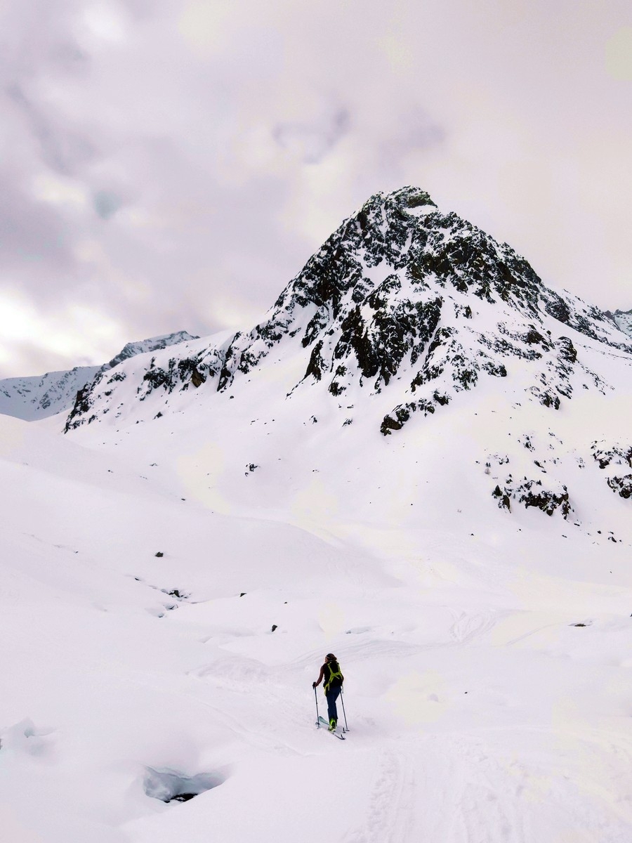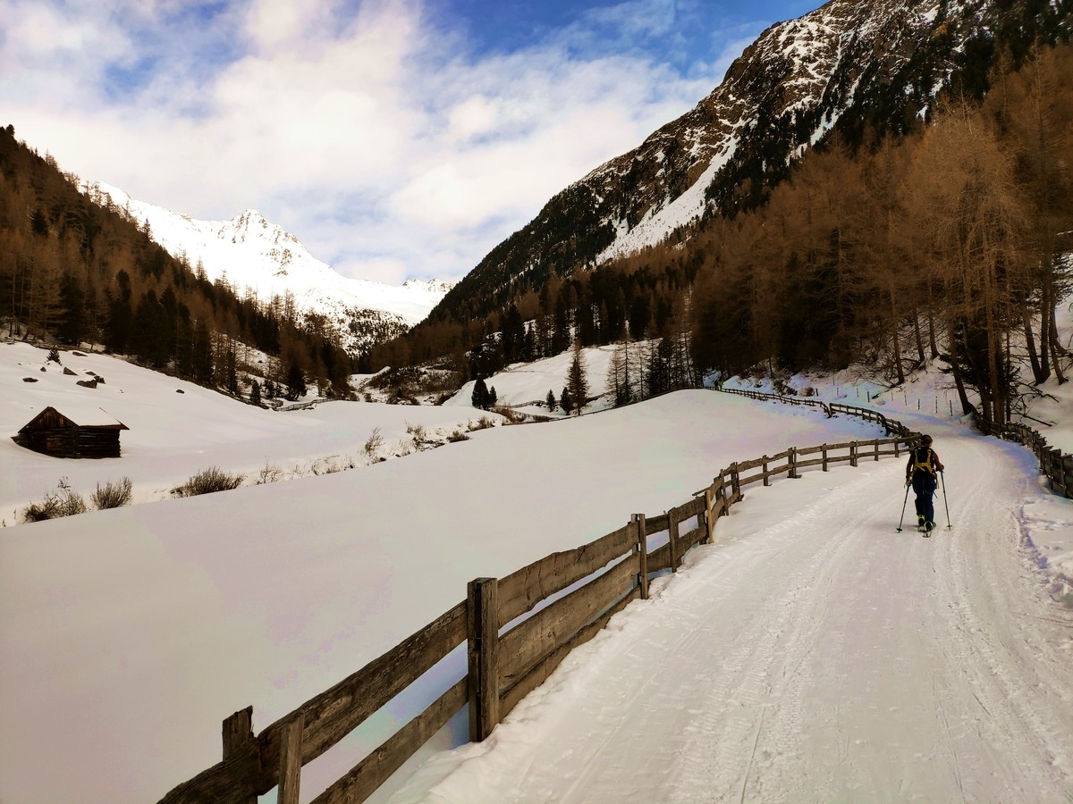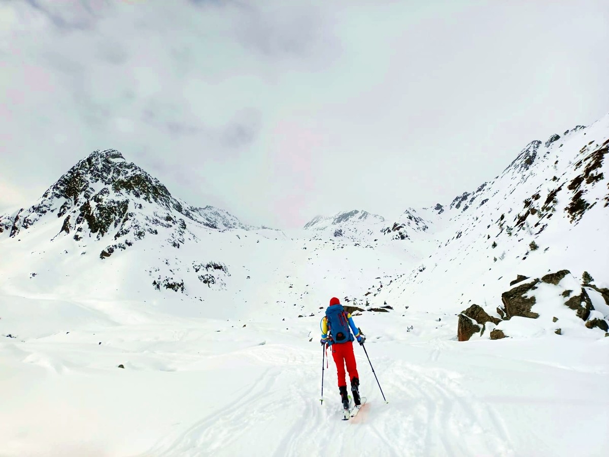 Über gut 1.200 Höhenmeter führt diese Skitour in den Stubaier Alpen von Niederthai auf den Kleinen und den Großen Peistakogel.
