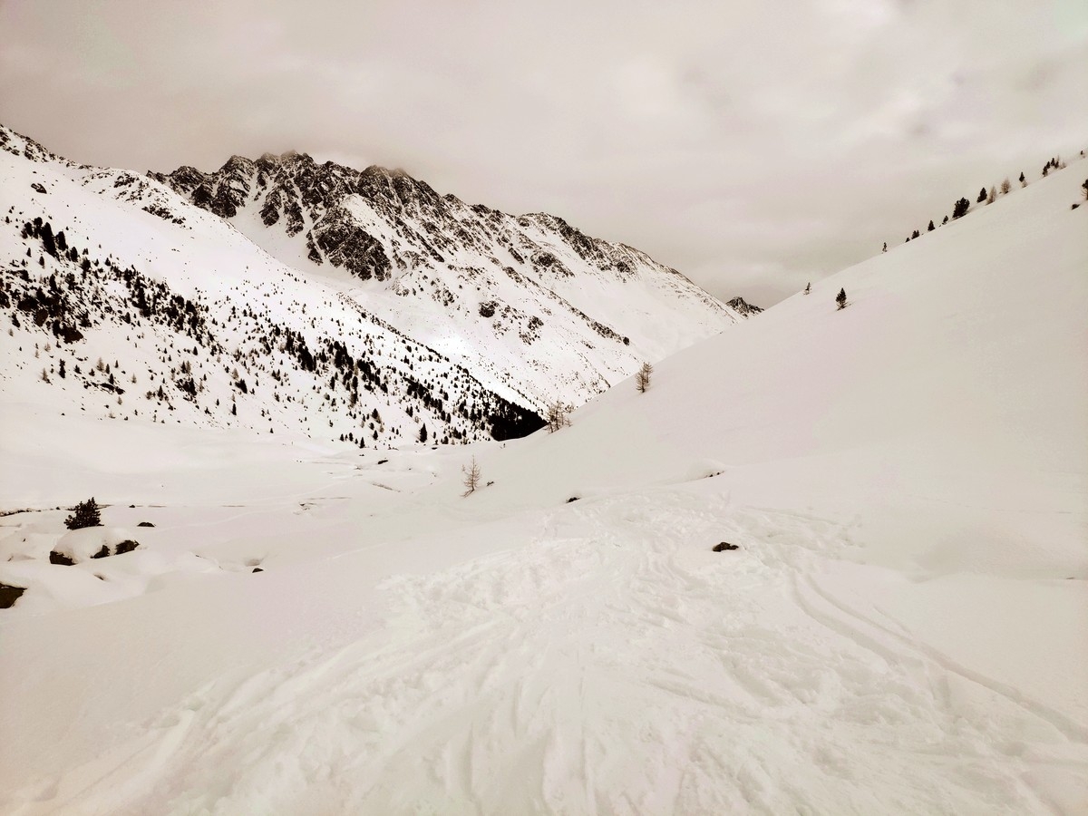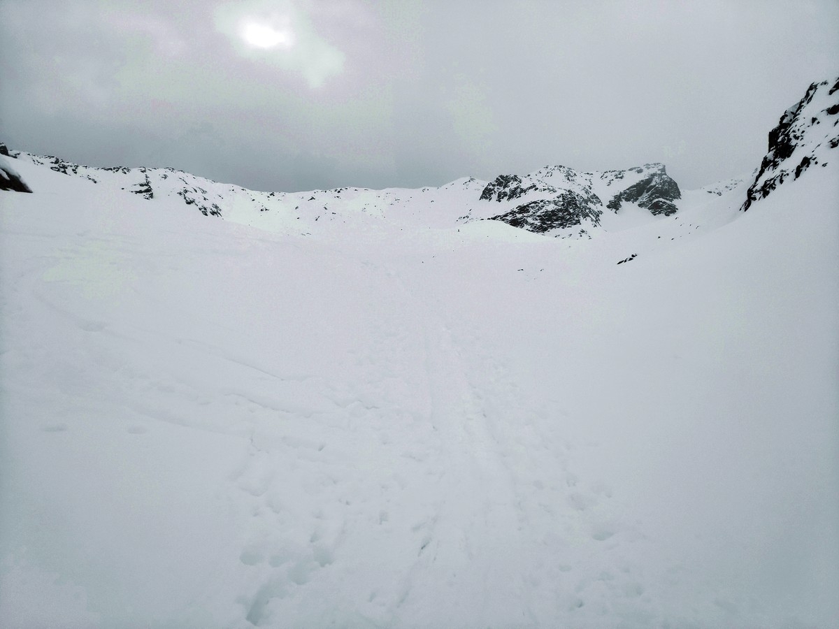 Vor allem der Schlusshang ist lawinengefährdet und sollte nur bei guten Bedingungen betreten werden.