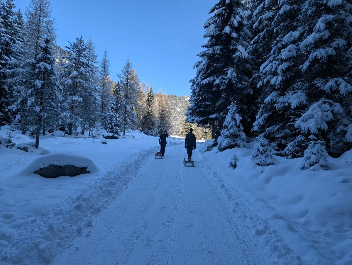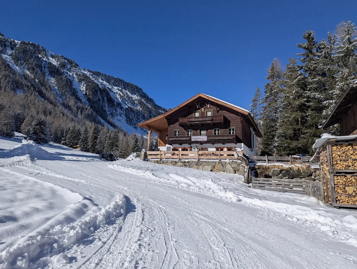 Auch landschaftlich weiß die Wanderung zu überzeugen. Der Blick reicht über das vordere Ötztal, während sich der Weg gemütlich durch dichten Wald schlängelt. Wer genau hinschaut, entdeckt unterwegs immer wieder kleine Lichtungen, alte Holzstapel und mit etwas Glück Wildspuren im Schnee. Kein Nervenkitzelberg, sondern ein Wanderung mit Charakter. Und mit Humor, denn spätestens bei der Abfahrt wird klar: Der Aufstieg war nur die halbe Miete.