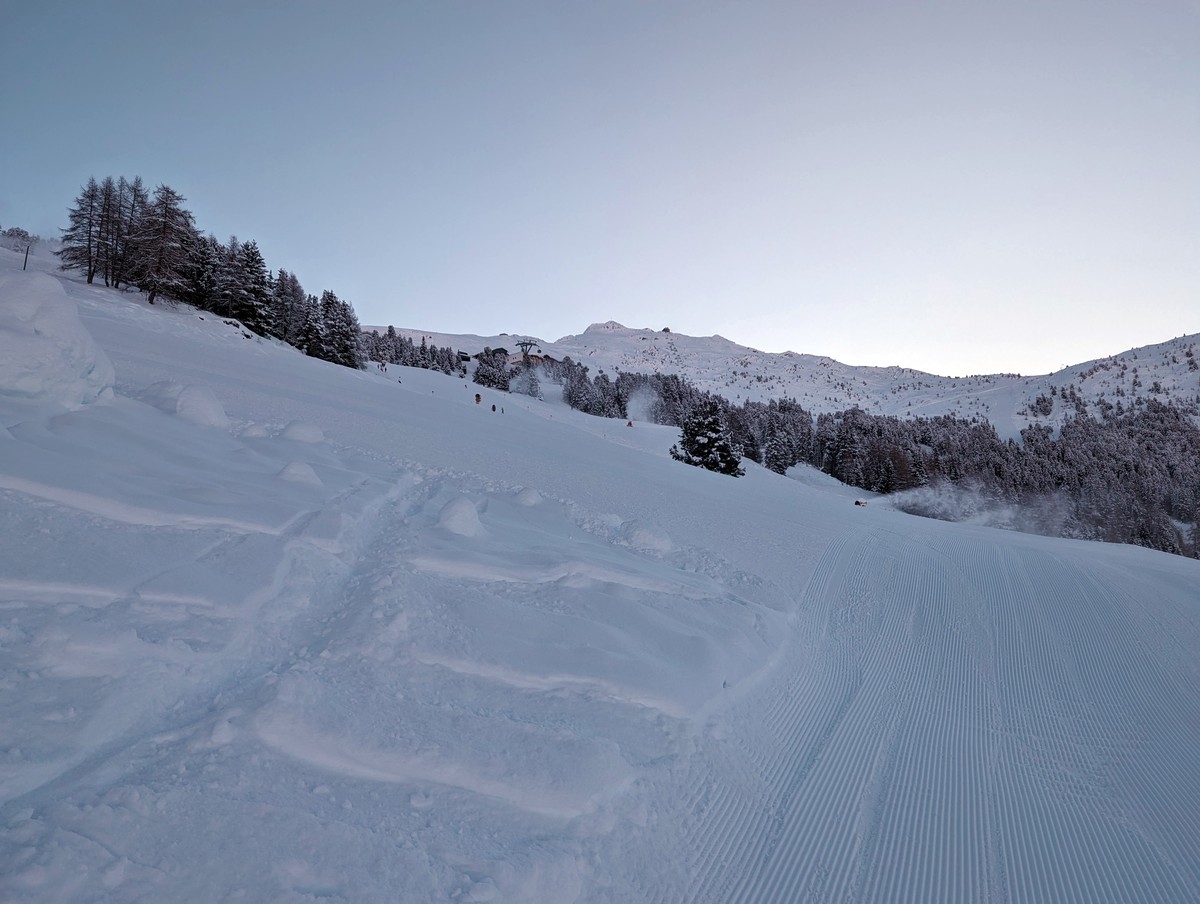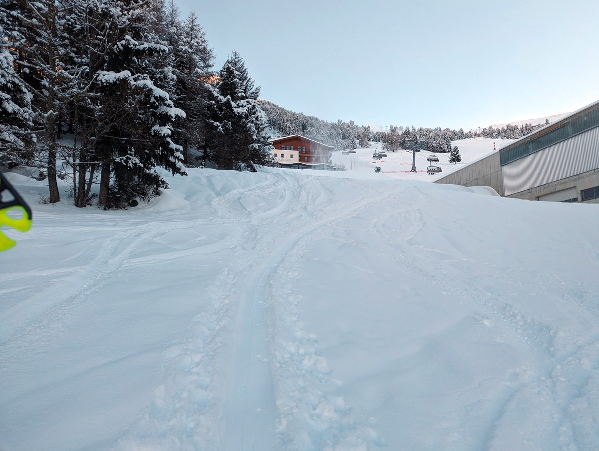 • Im oberen Bereich ist eine Abfahrt durch den dichten Wald allerdings wenig sinnvoll bzw. teilweise sehr anspruchsvoll. Im unteren Abschnitt ab der Talstation der Panoramabahn ist die Abfahrt über das Gelände im Bereich der Aufstiegsspuren definitiv empfehlenswert