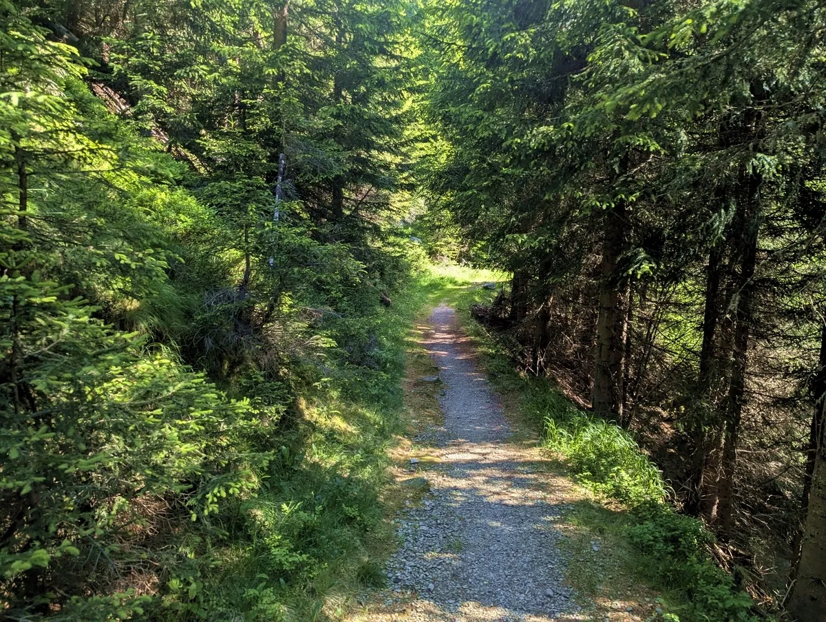 - Von der Hütte führt die Forststraße (bekannt als Winter-Skiroute) über gut 5 km zurück zum Ausgangspunkt.