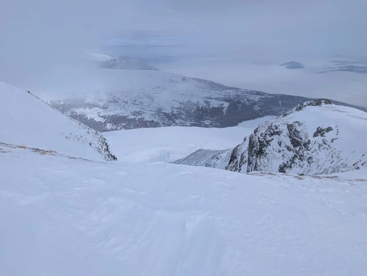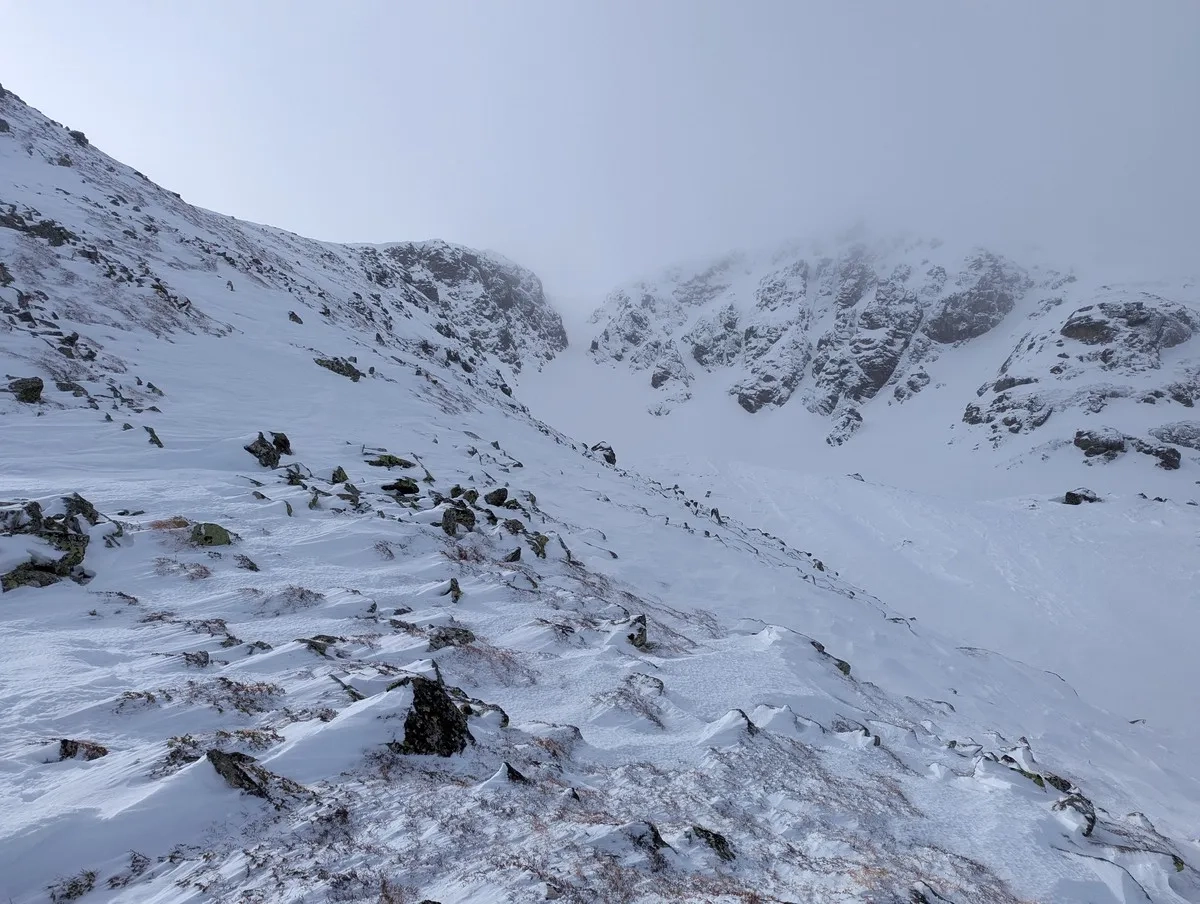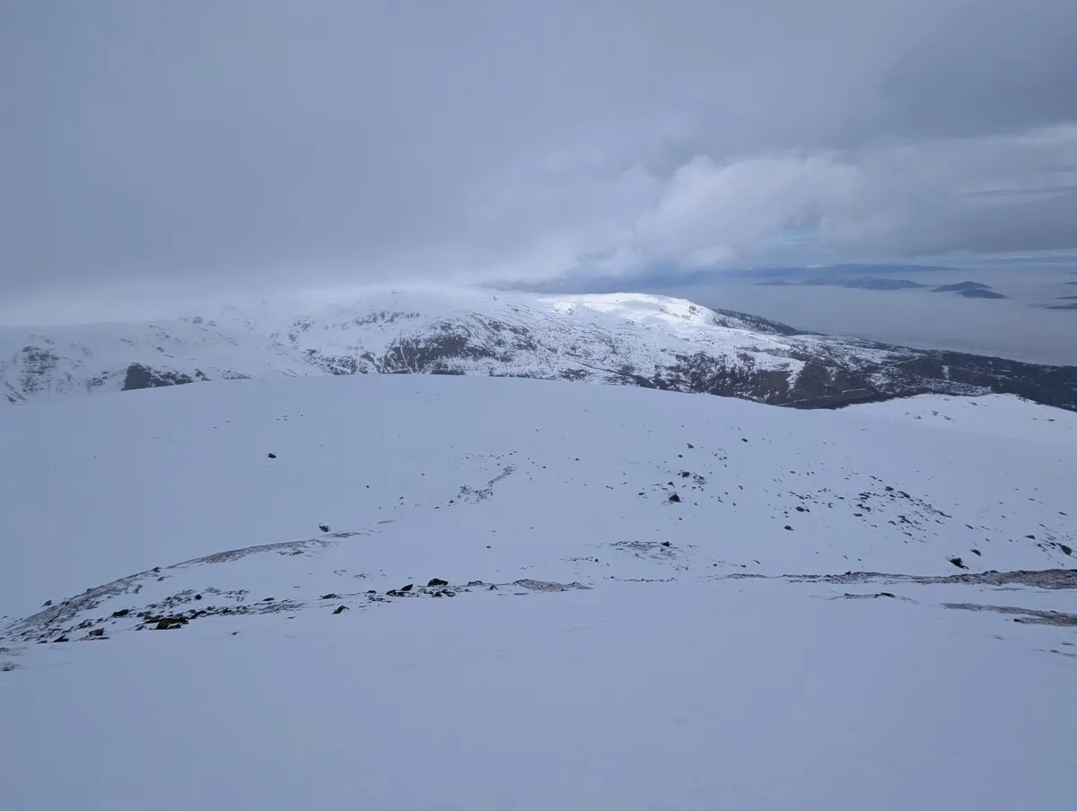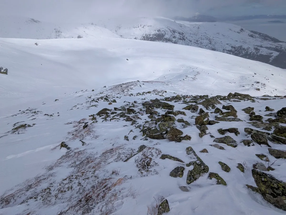 - Die klassische Route führt auf den Grat, wo der Wind gelegentlich Schnee abgetragen hat, was Abschnitte ohne Ski nötig macht. Alternativ bietet die breitere Passage mehr Komfort und besseren Schnee.