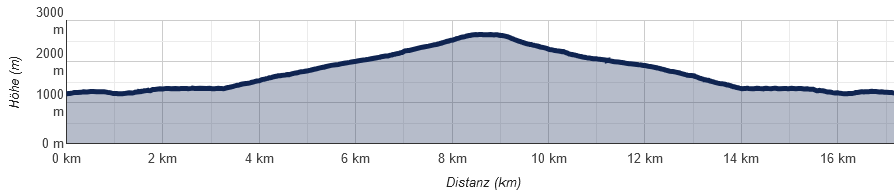- Auf etwa 2.350 Metern Höhe ist das Gelände wieder einfacher. Der Schlussabschnitt gestaltet sich relativ einfach. Ein sanfter Anstieg führt über breites Gelände bis zum Gipfel.