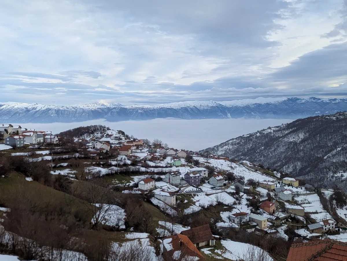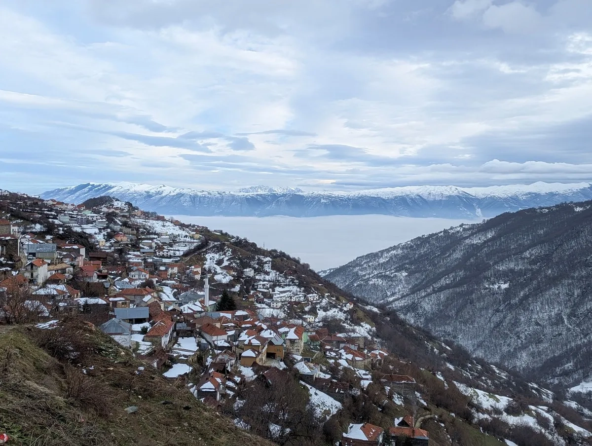 Von Tetovo führt eine kurvenreiche Bergstraße nach Novo Selo. Achtung: Die Straße ist schmal und im Winter oft nur unzureichend geräumt. Ich empfehle ausdrücklich, am Ortsbeginn in der Nähe des Fußballplatzes zu parken. Weiter westlich verschlechtert sich der Straßenzustand erheblich, was die Zufahrt nahezu unmöglich macht.