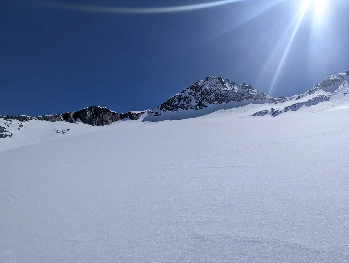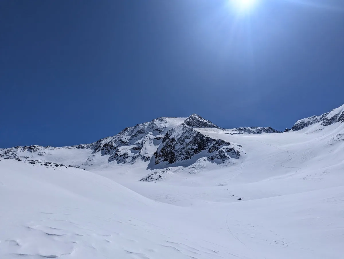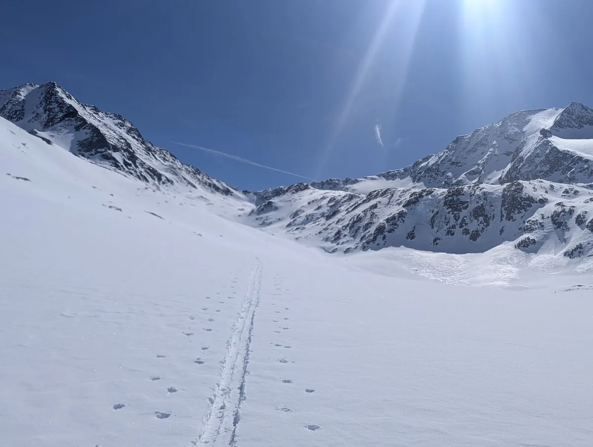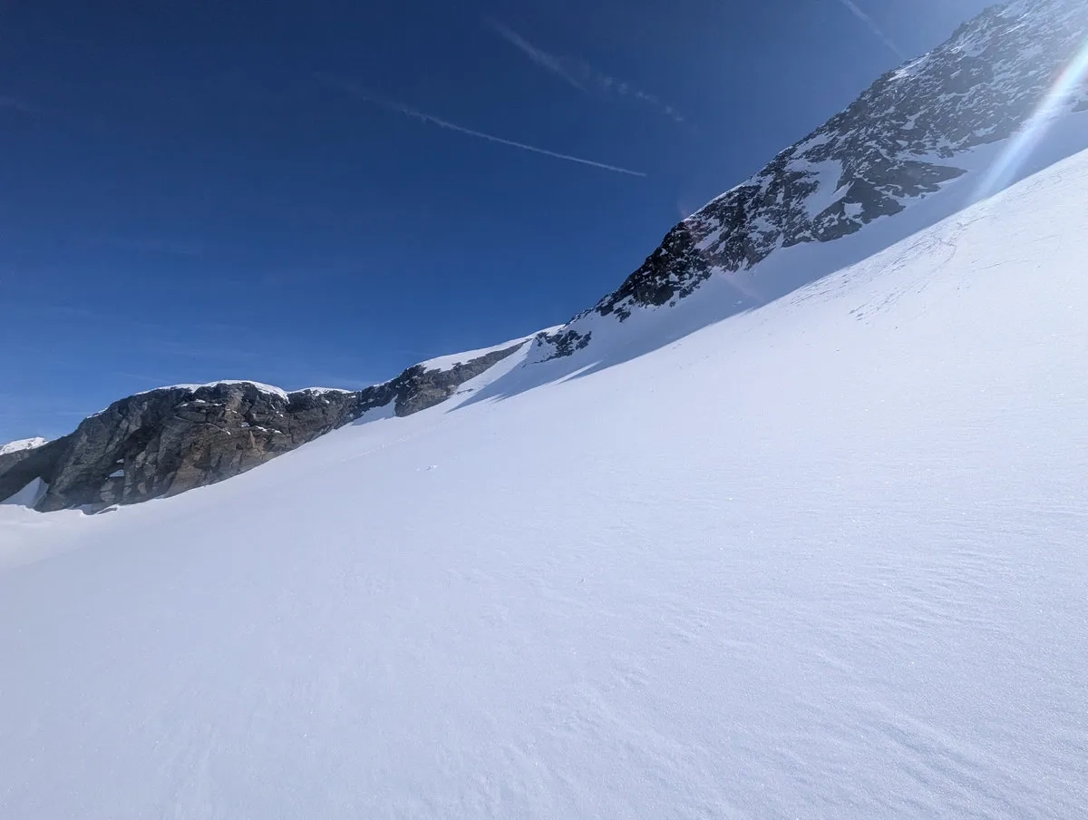 Anspruchsvoll sind zudem die Steilstufen am Gletscher sowie der finale Gipfelhang, den ich leider nicht mehr erreicht habe. Diese Passage verlangt sichere Spitzkehrentechnik, Erfahrung im hochalpinen Gelände und ein gutes Gespür für Schnee und Gelände.