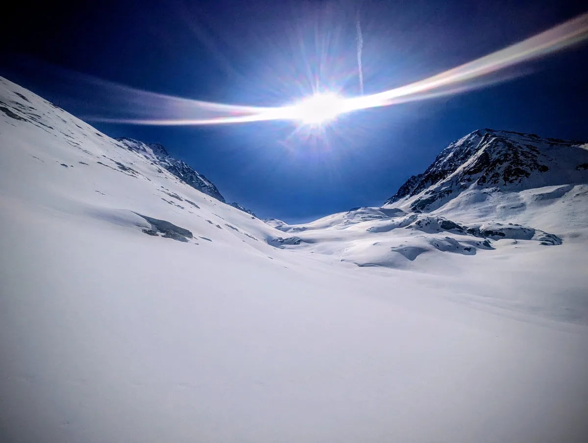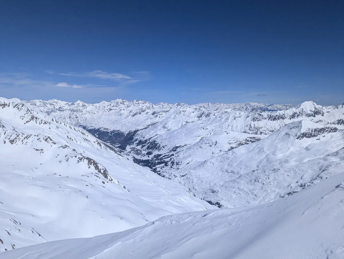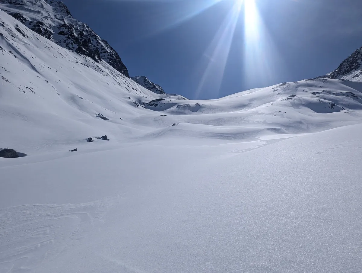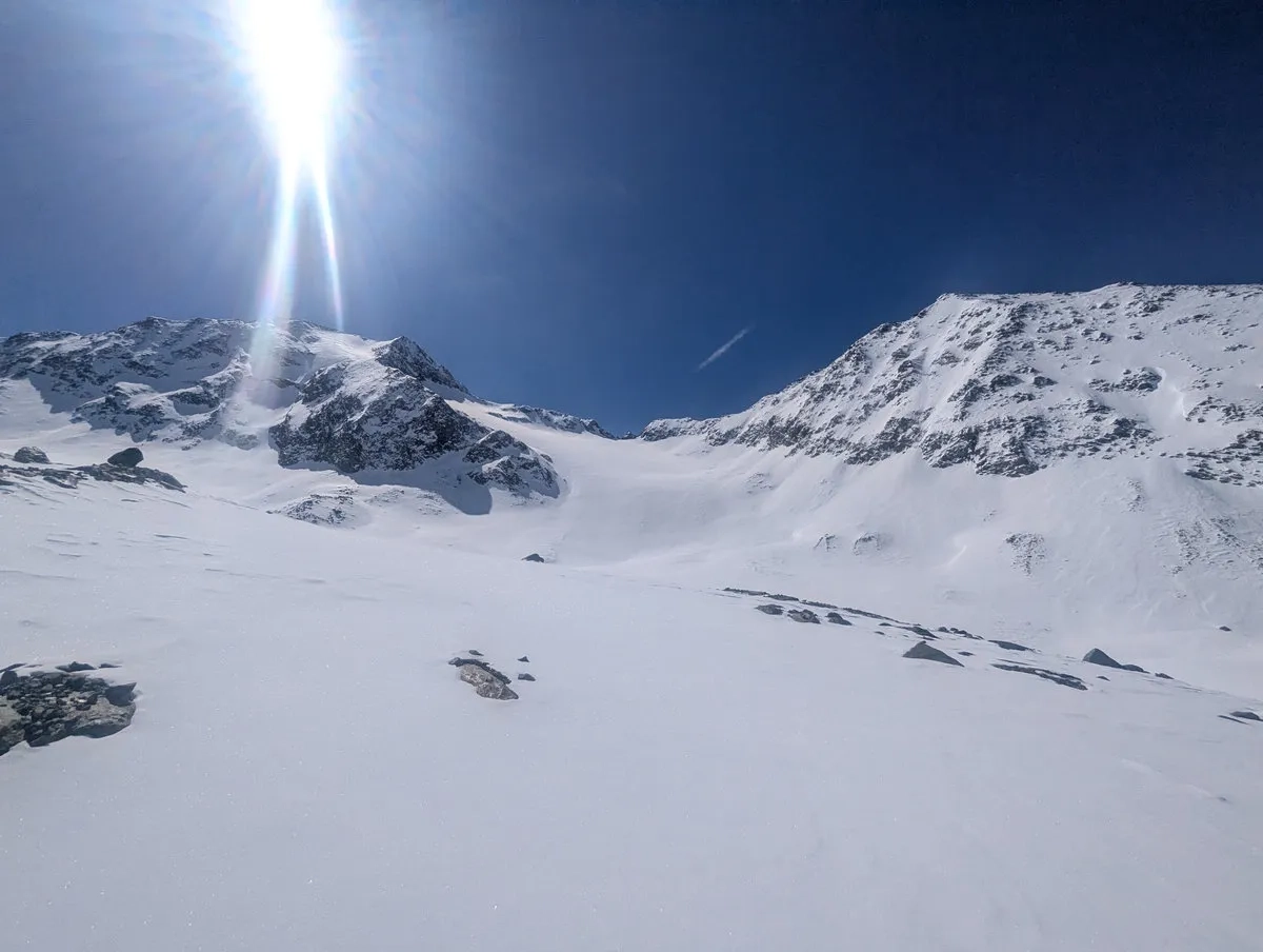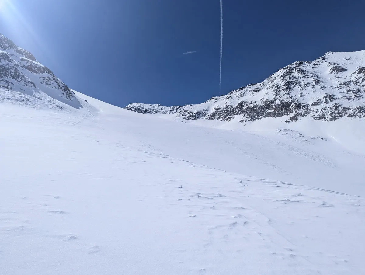 Anspruchsvoll sind zudem die Steilstufen am Gletscher sowie der finale Gipfelhang, den ich leider nicht mehr erreicht habe. Diese Passage verlangt sichere Spitzkehrentechnik, Erfahrung im hochalpinen Gelände und ein gutes Gespür für Schnee und Gelände.