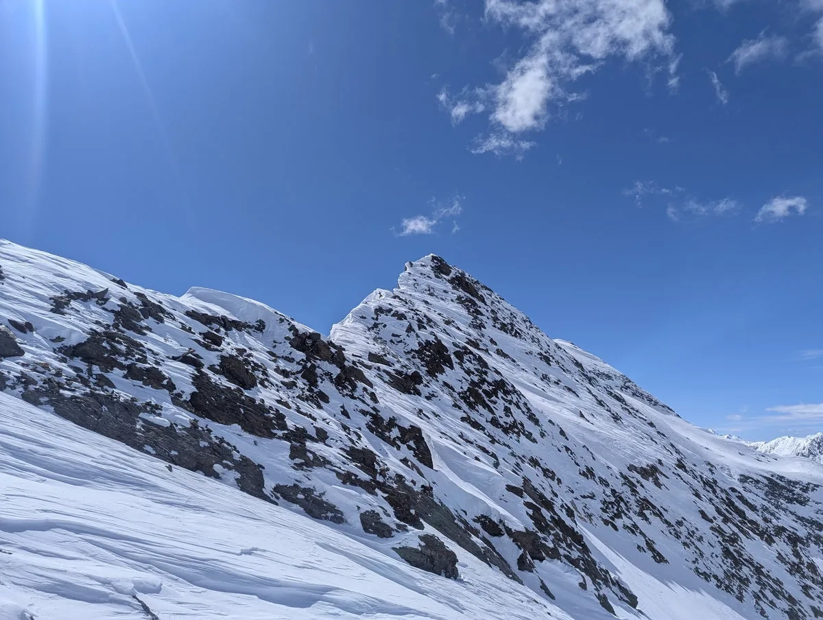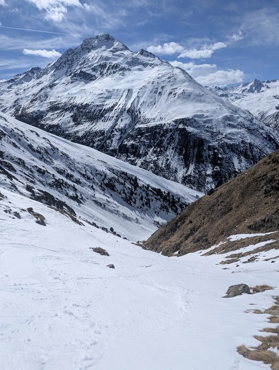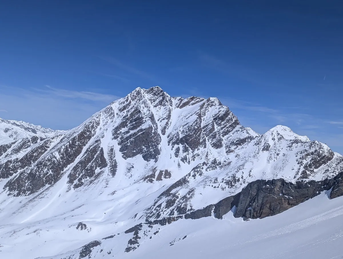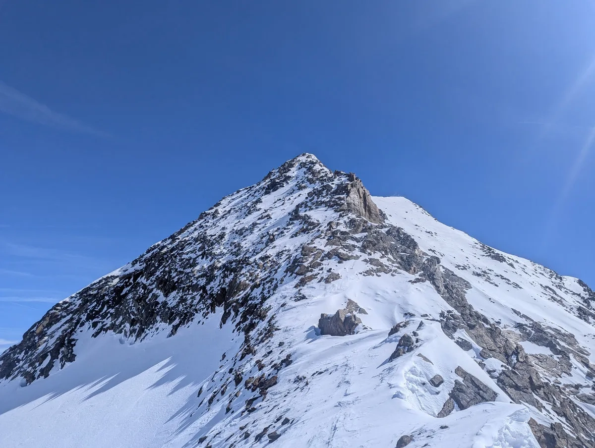 Allerdings sei vorweg gesagt: Für das Erreichen des Gipfels benötigt es sehr gute Schneeverhältnisse und eine sichere Lawinenlage. Ich habe bei meiner Tour den Gipfel knapp verpasst. Einfach, weil zu wenig Schnee am Gletscher lag und damit der Übergang vom rechten Teil des Gletschers auf die linke bzw. mittlere Gletscherhälfte nicht möglich war bzw. nur mit erhöhtem Risiko. Demnach ist die Tour eher erst ab April gut umsetzbar, wenn die Gletscher (hoffentlich) ausreichend mit Schnee bedeckt sind und diese Schlüsselstelle nicht von einer steilen Felsrampe blockiert wird.