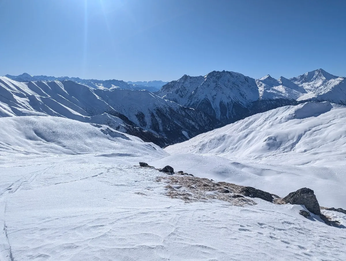 Die Samnaungruppe ist bekannt für ihre abgeschiedenen Gipfel und ihre spektakulären Panoramen. Das Hintere Kreuzjoch thront über der Region und bietet bei klarem Wetter einen Fernblick bis zur Silvretta und den Ötztaler Alpen. Besonders im Winter verwandelt sich die Region in ein wahres Skitourenparadies – und genau hier setzt diese Tour an!