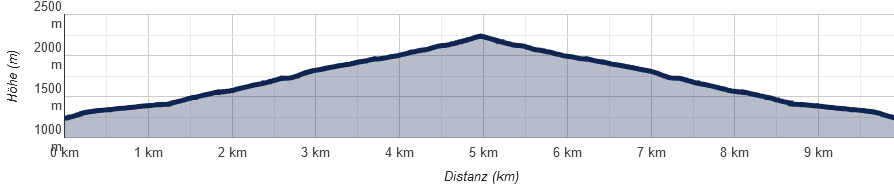 - Offenes Gelände: Sobald der Wald hinter einem liegt, öffnet sich das Gelände. Unterhalb der Proxenalm führt die Route entlang eines mittelsteilen Hangs, dann halbrechts einen weiteren Hang hinauf zur Materialseilbahn.